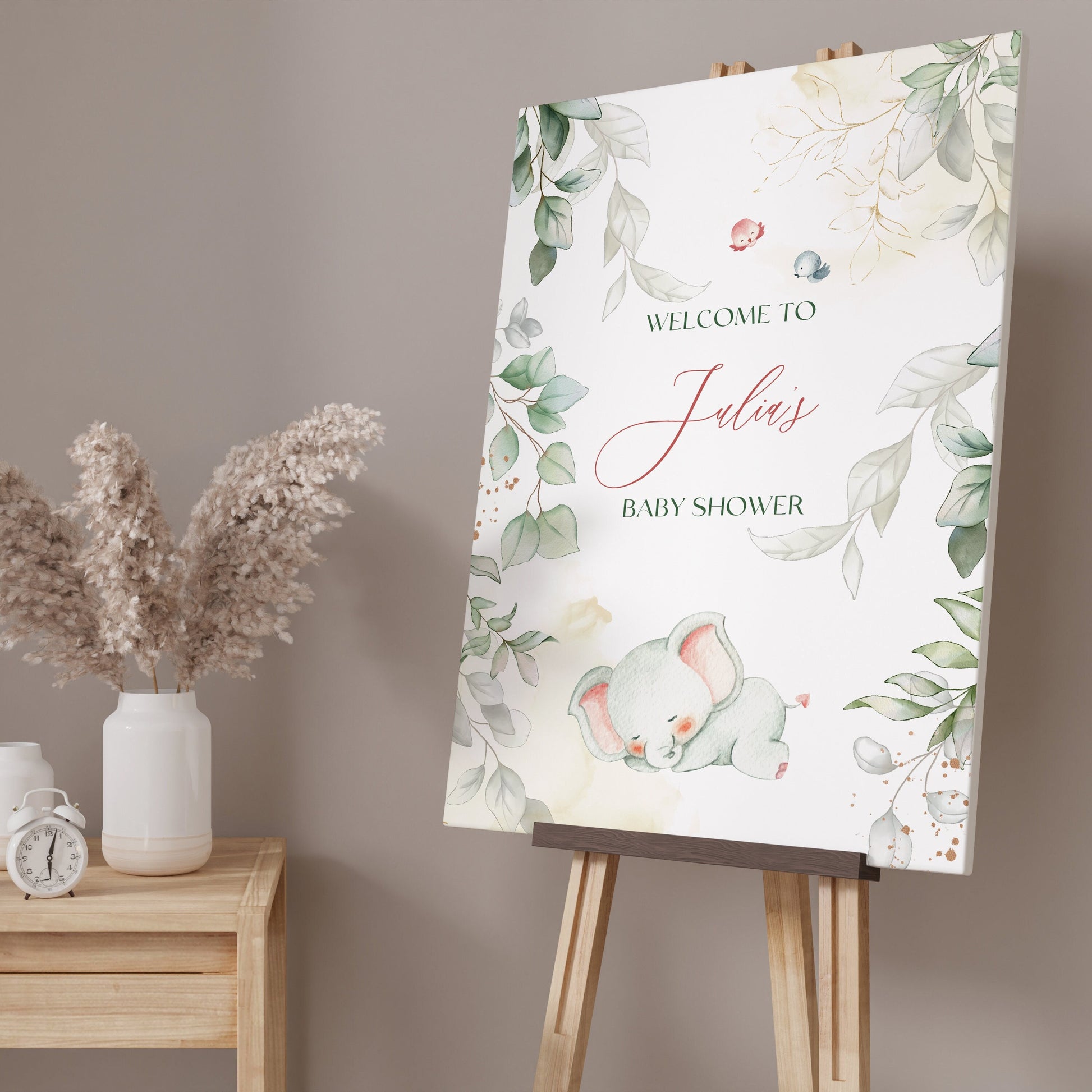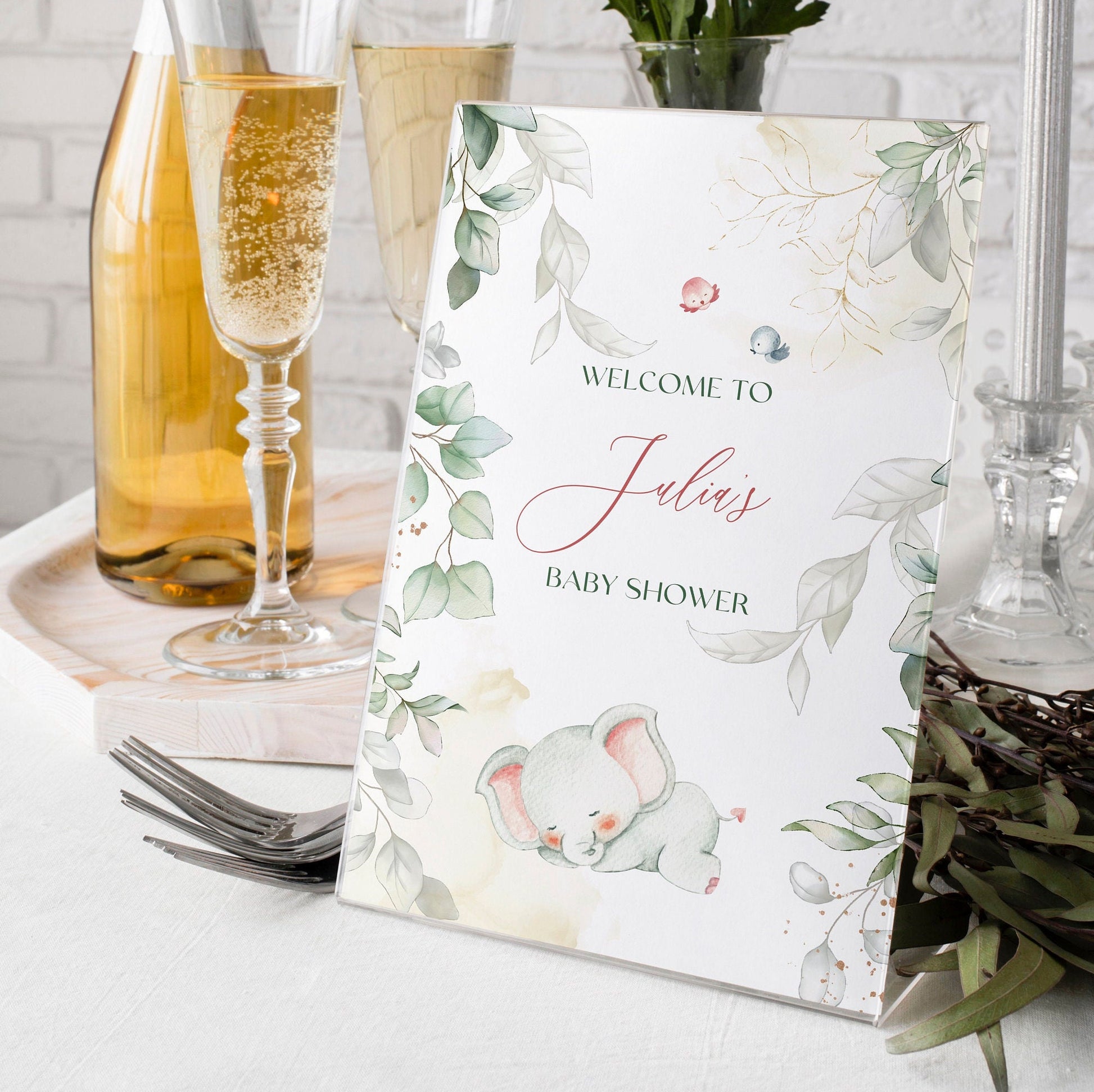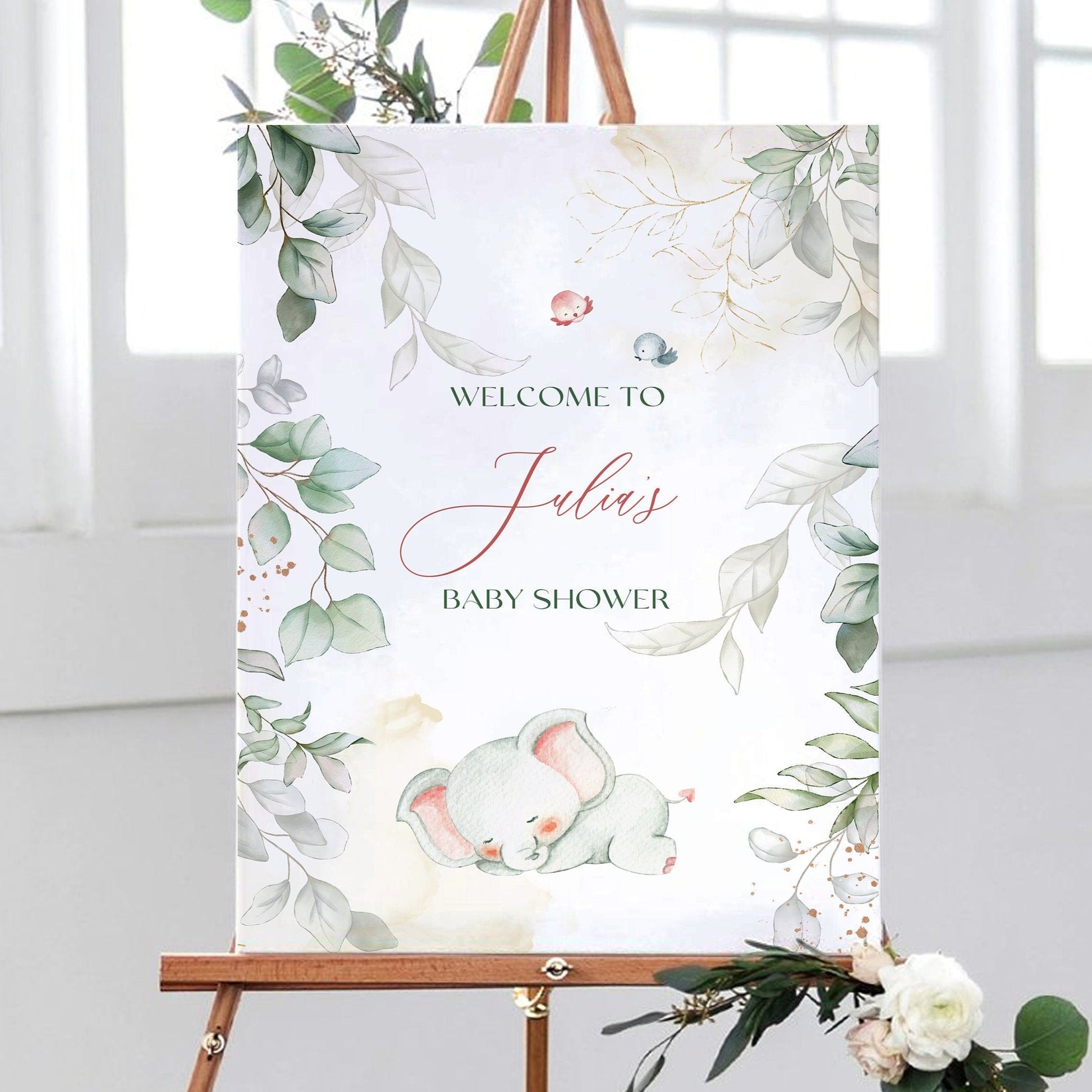 This elephant baby shower welcome sign is not only a great way to welcome your guests, but also serves as a charming decoration for the party. It can be hung on a wall, a door, or even a tree to add a touch of whimsy and cuteness to your event.