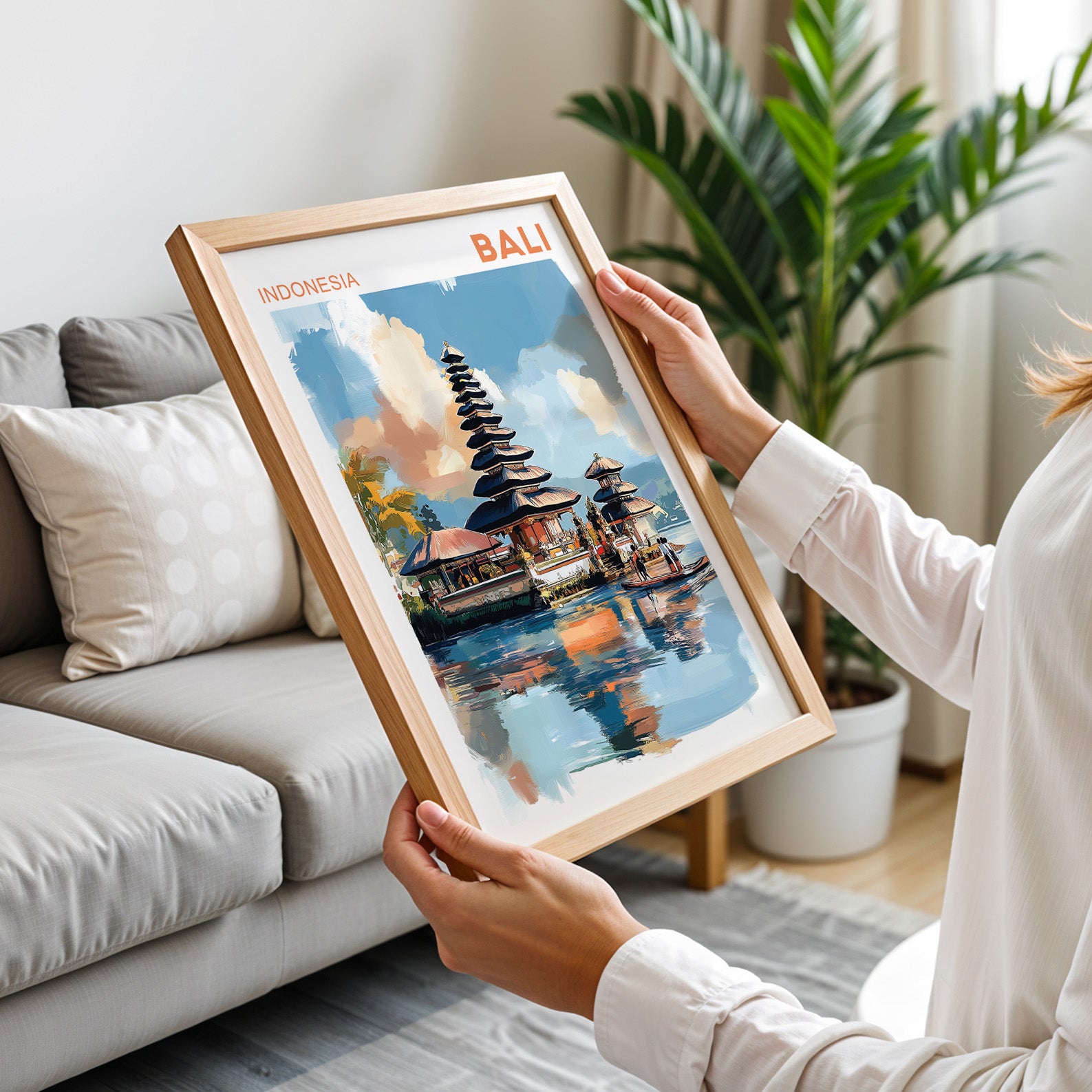 Ideal for lovers of tropical destinations, island life, and exotic travel art, this piece brings the essence of Bali’s paradise into your home.