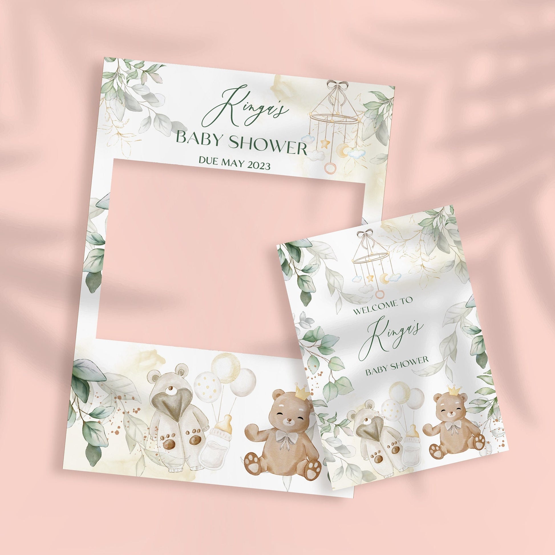 Bear & Eucalyptus Baby Shower Selfie Frame and Party Sign