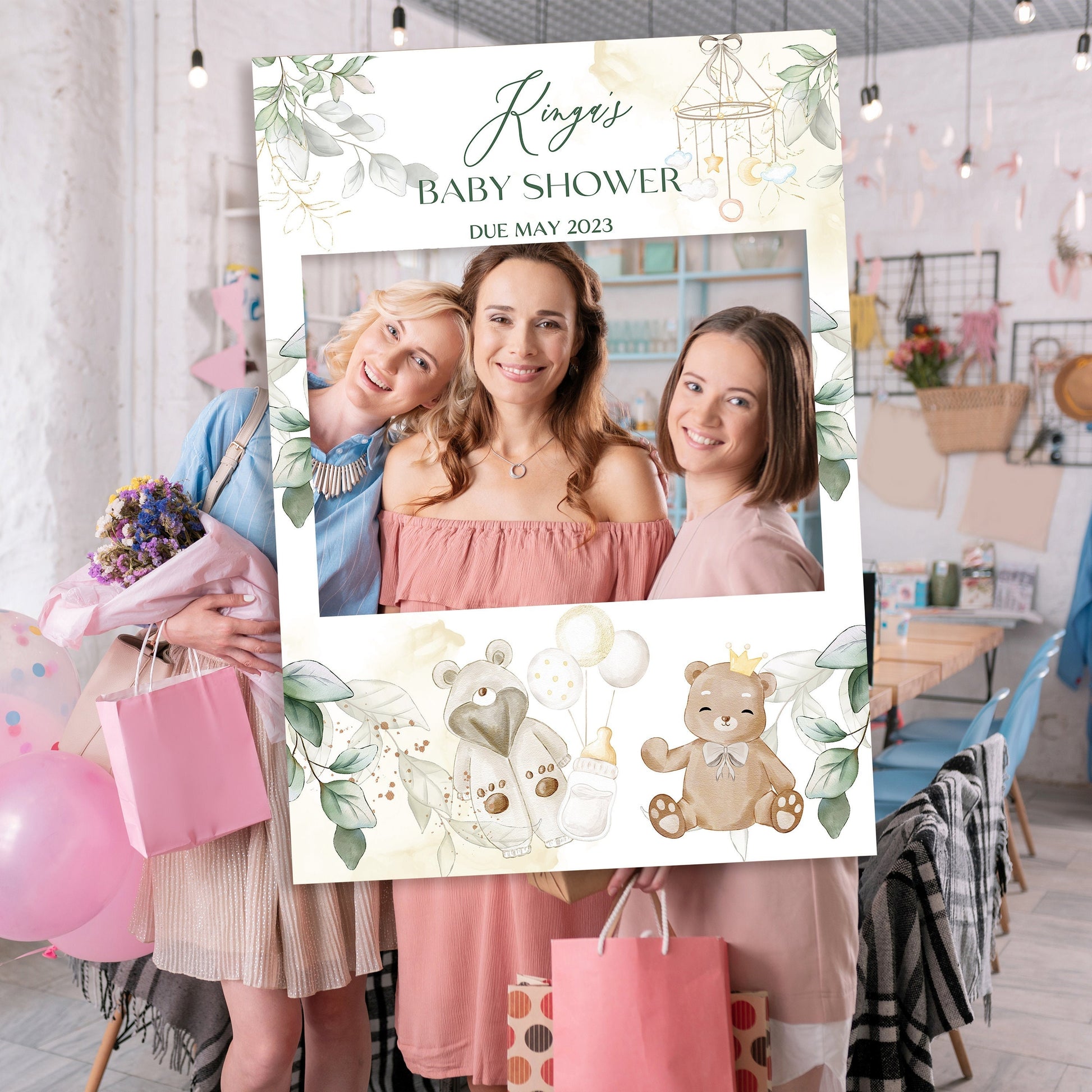 This elegant teddy bear eucalyptus baby shower selfie frame and matching sign is a great addition to any Baby Shower. This teddy bear theme makes a wonderful addition to your decor at the baby shower table. Use the photo booth selfie frame for your guests to take photos with props.