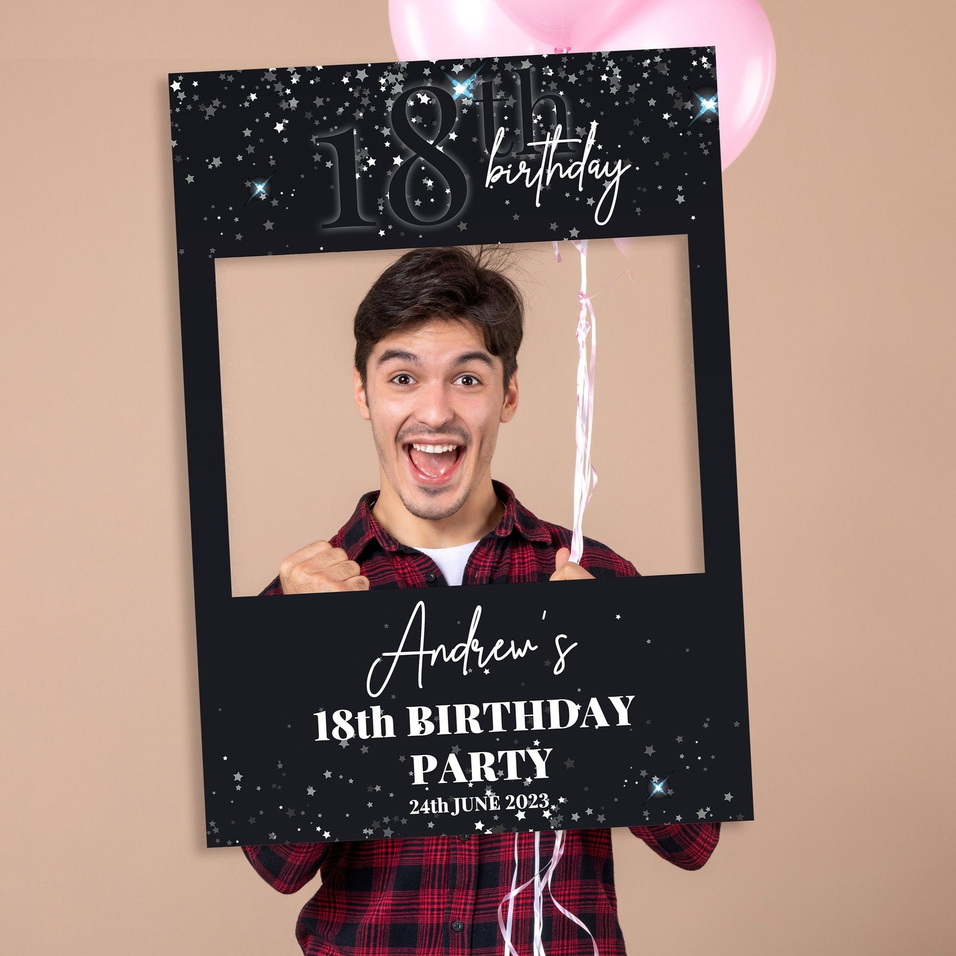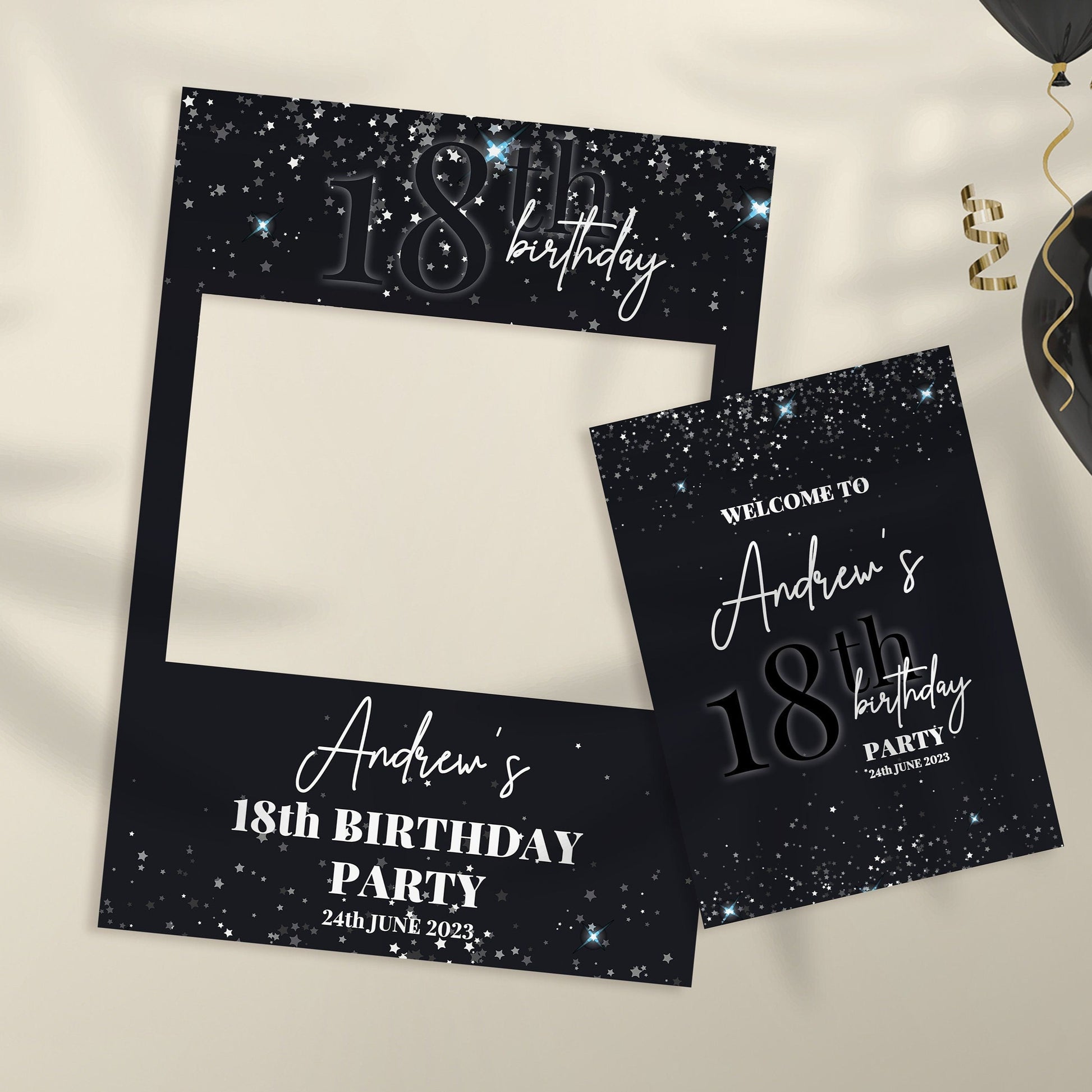 Black and Silver 18th Birthday Party Selfie Frame and Party Sign