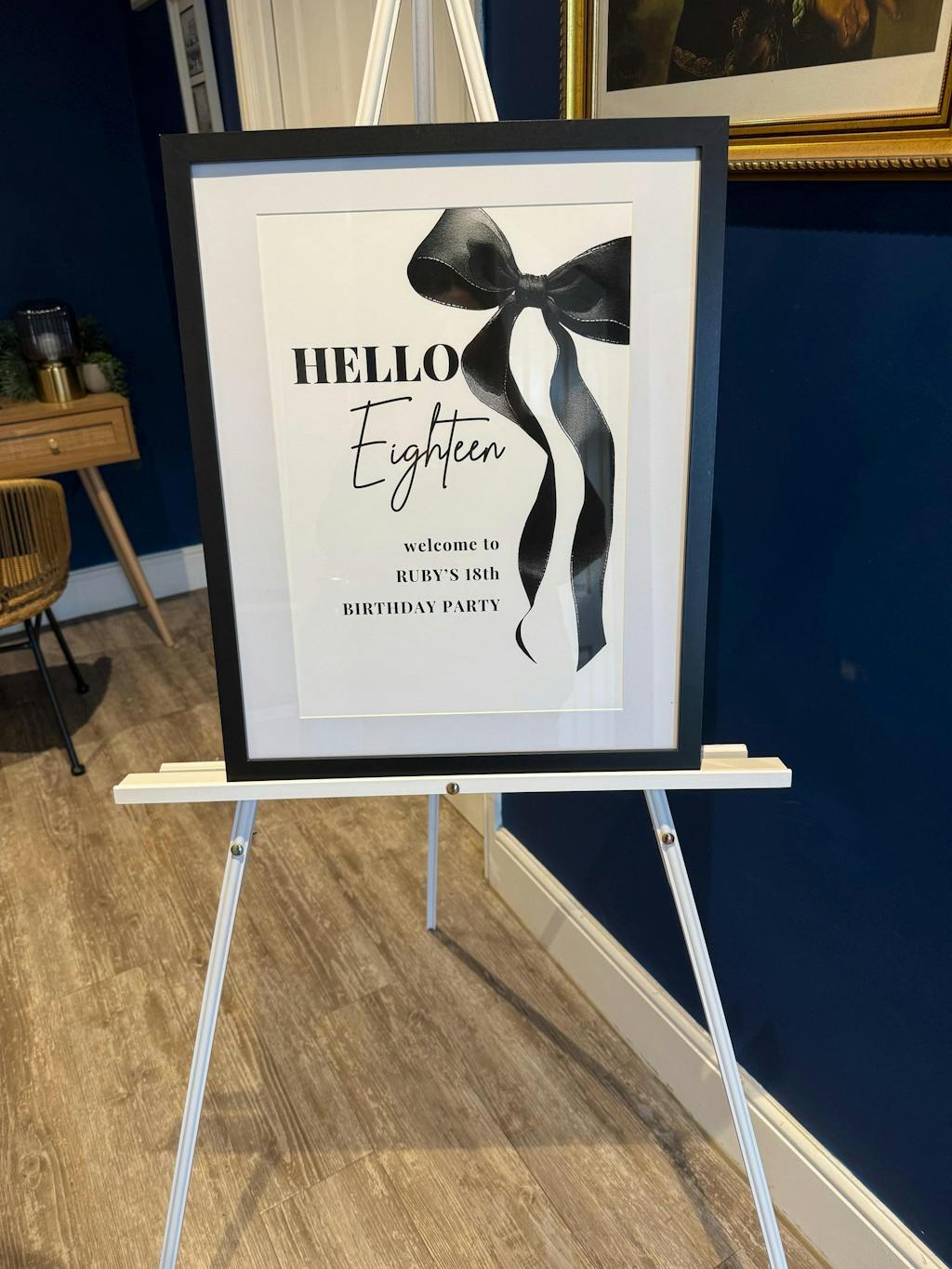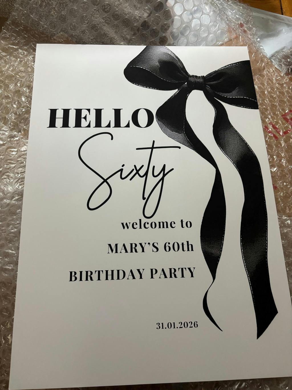 Whether it's for an 18th party, 21st birthday party, 30th, 40th, whatever the age, this bow party sign can be customised to suit.