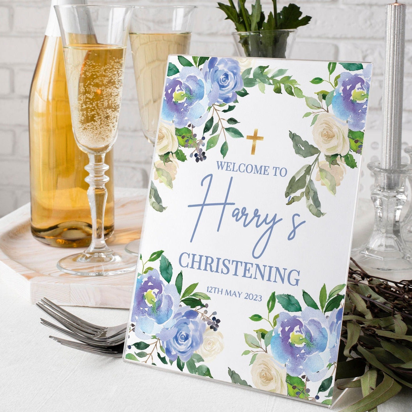 Blue Roses Christening Selfie Frame & Welcome Sign