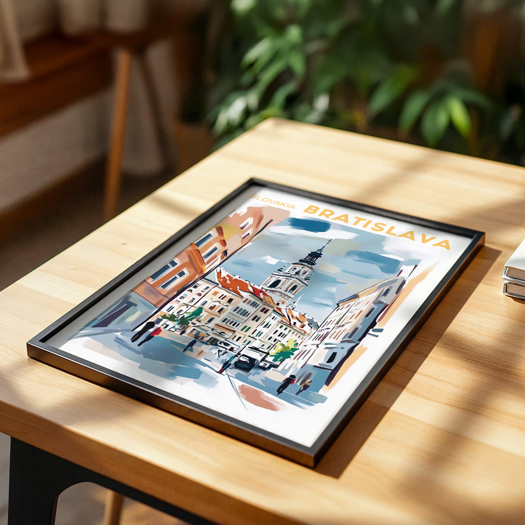 Ideal for admirers of historic cities, architecture, and travel art, this print brings the quiet elegance of Bratislava into your home.