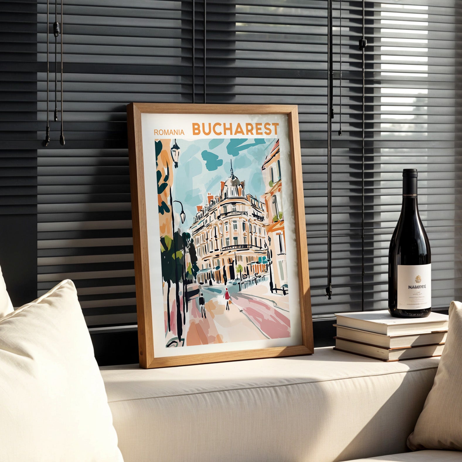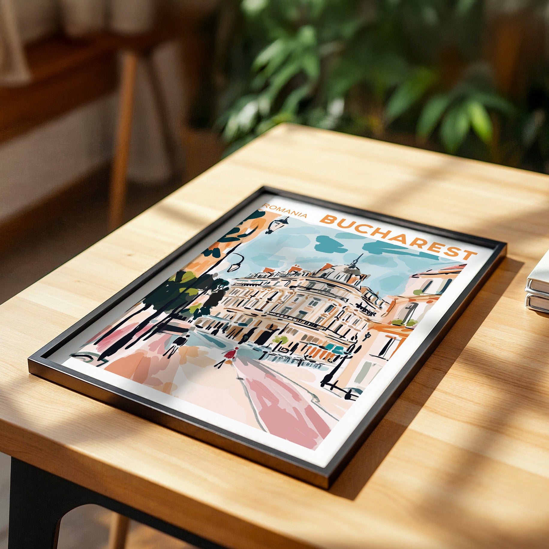 Illustrated in a graceful painterly style, this Bucharest wall art blends classical charm with modern vibrancy — perfect for adding colour and sophistication to your home, study, or hallway.