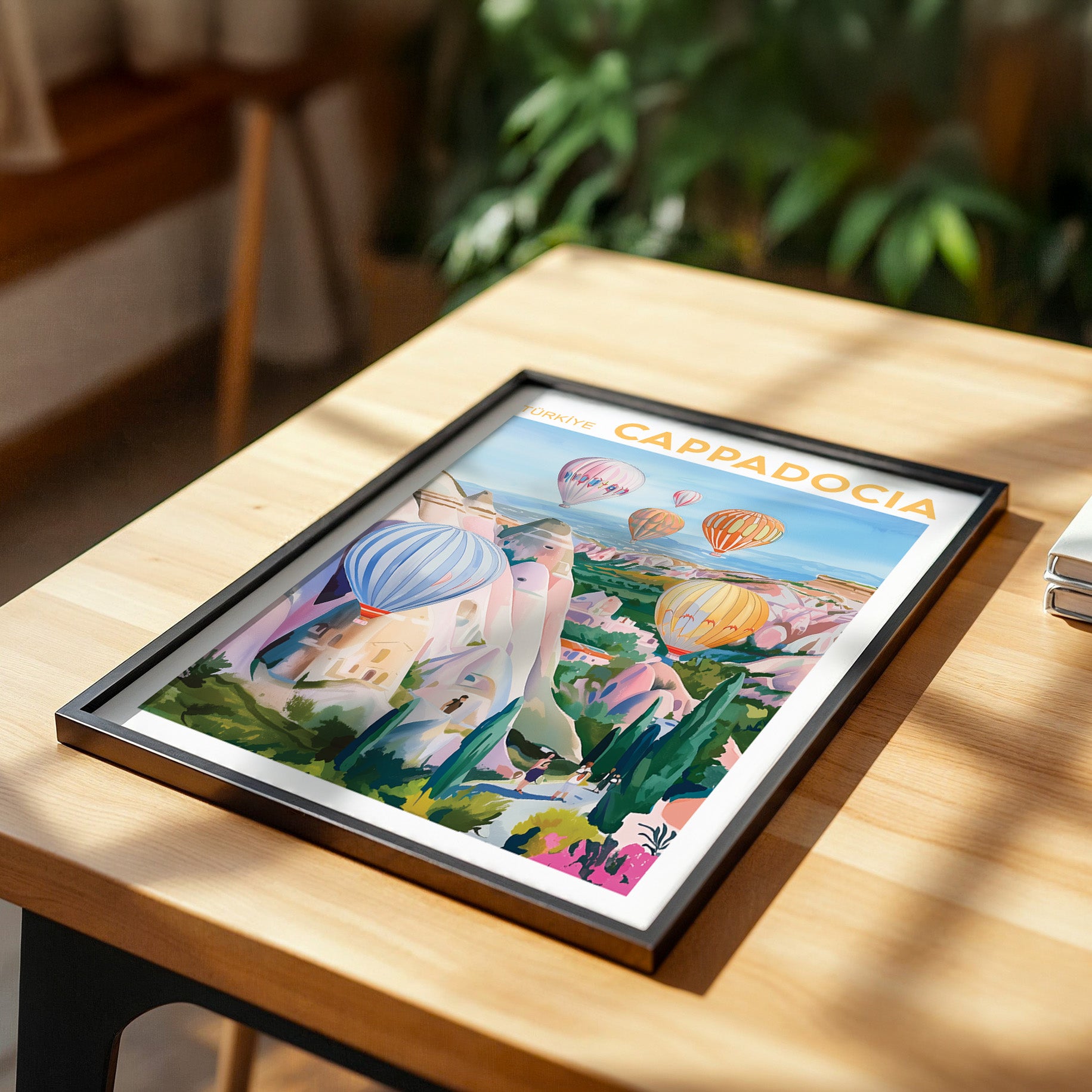 Illustrated in a dreamy painterly style, this Cappadocia wall art radiates warmth and wonder — perfect for adding a sense of adventure and beauty to your living room, hallway, or bedroom.