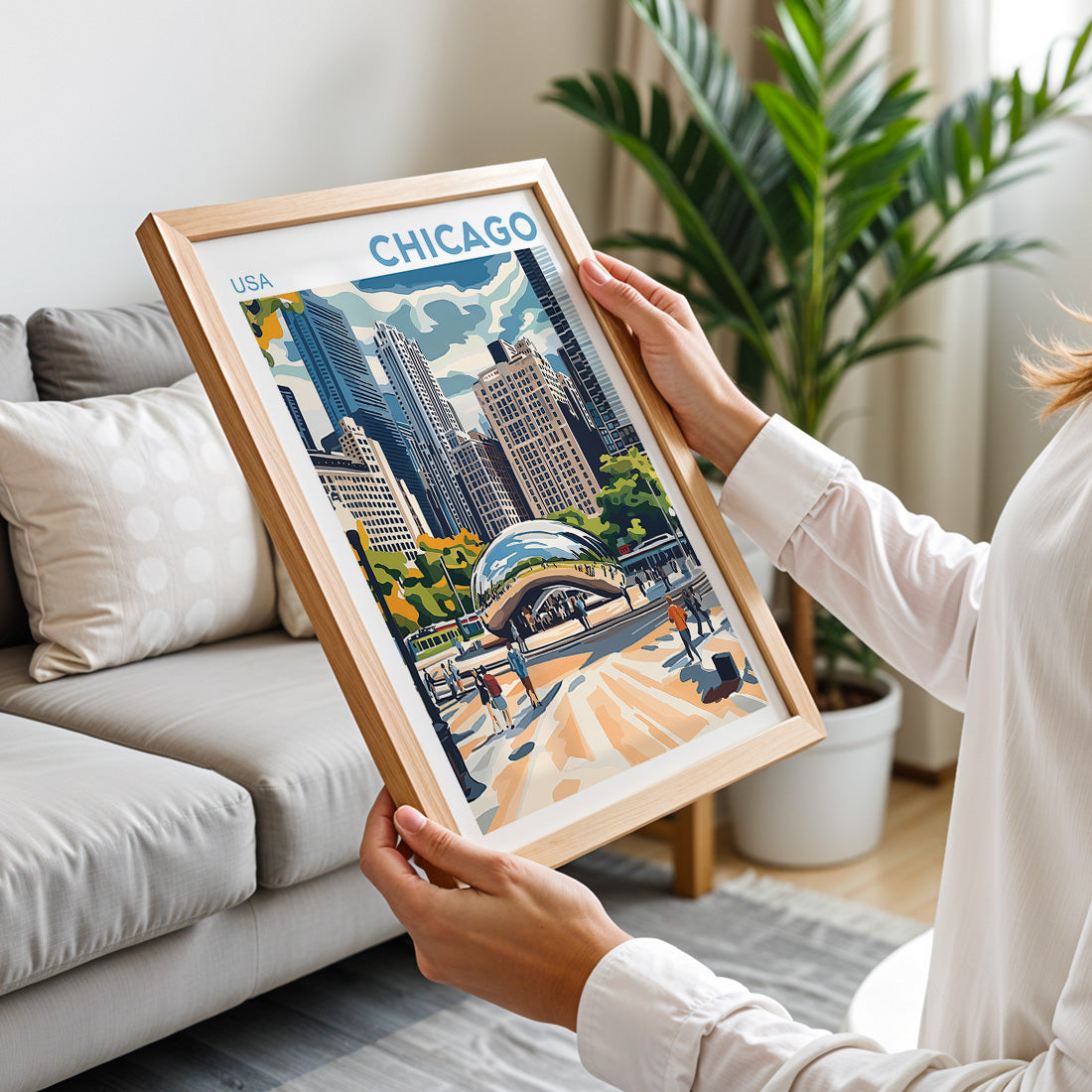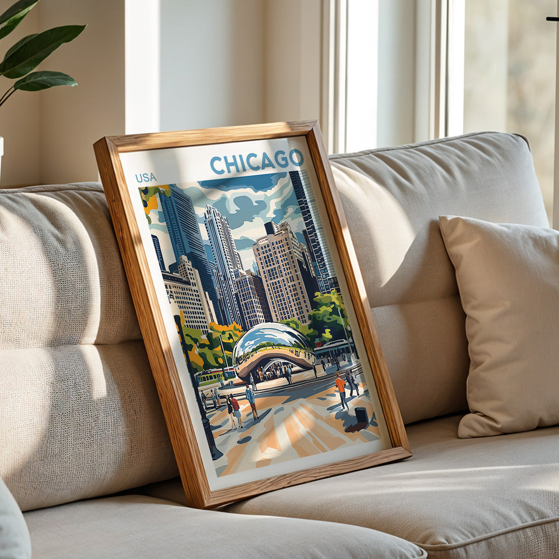 Perfect for admirers of architecture, design, and city-inspired décor, this print embodies the creative spirit and strength of Chicago.