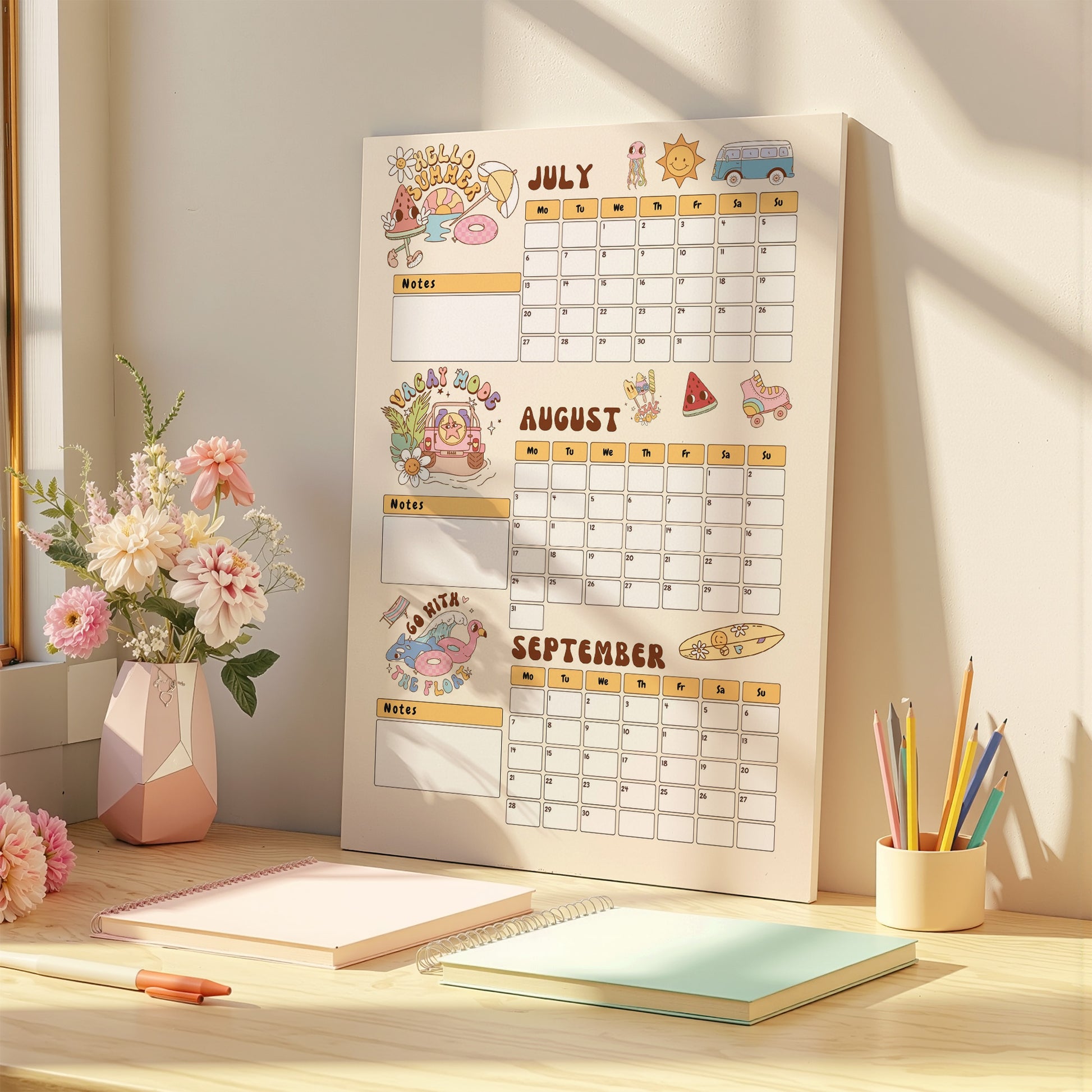 Introducing our Fun Retro Printed Summer Wall Calendar.