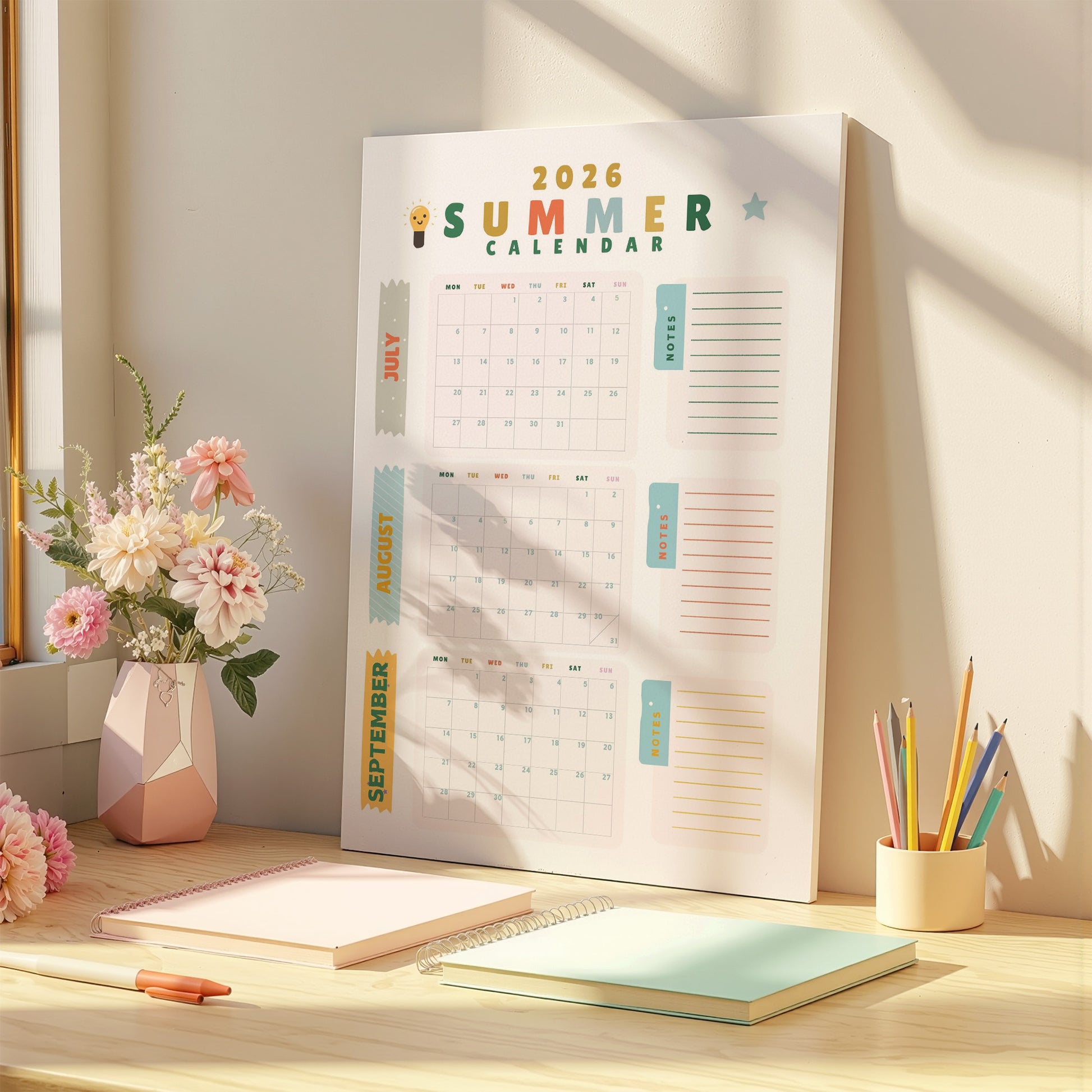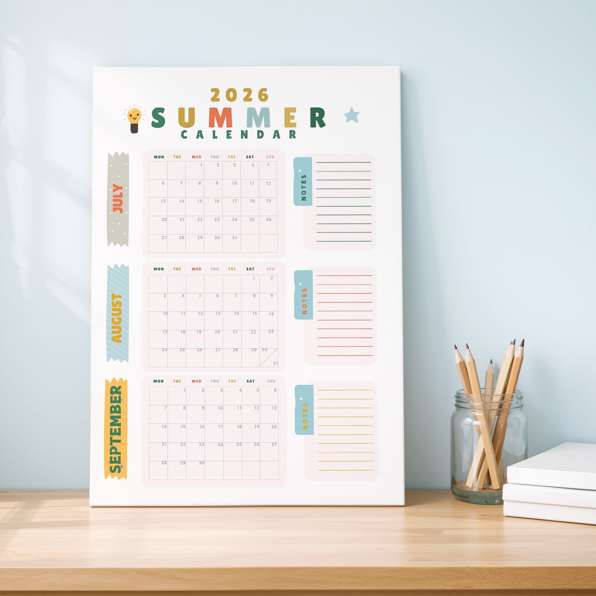 Introducing our fun and colourful summer holiday wall calendar to plan your upcoming activities over the summer.