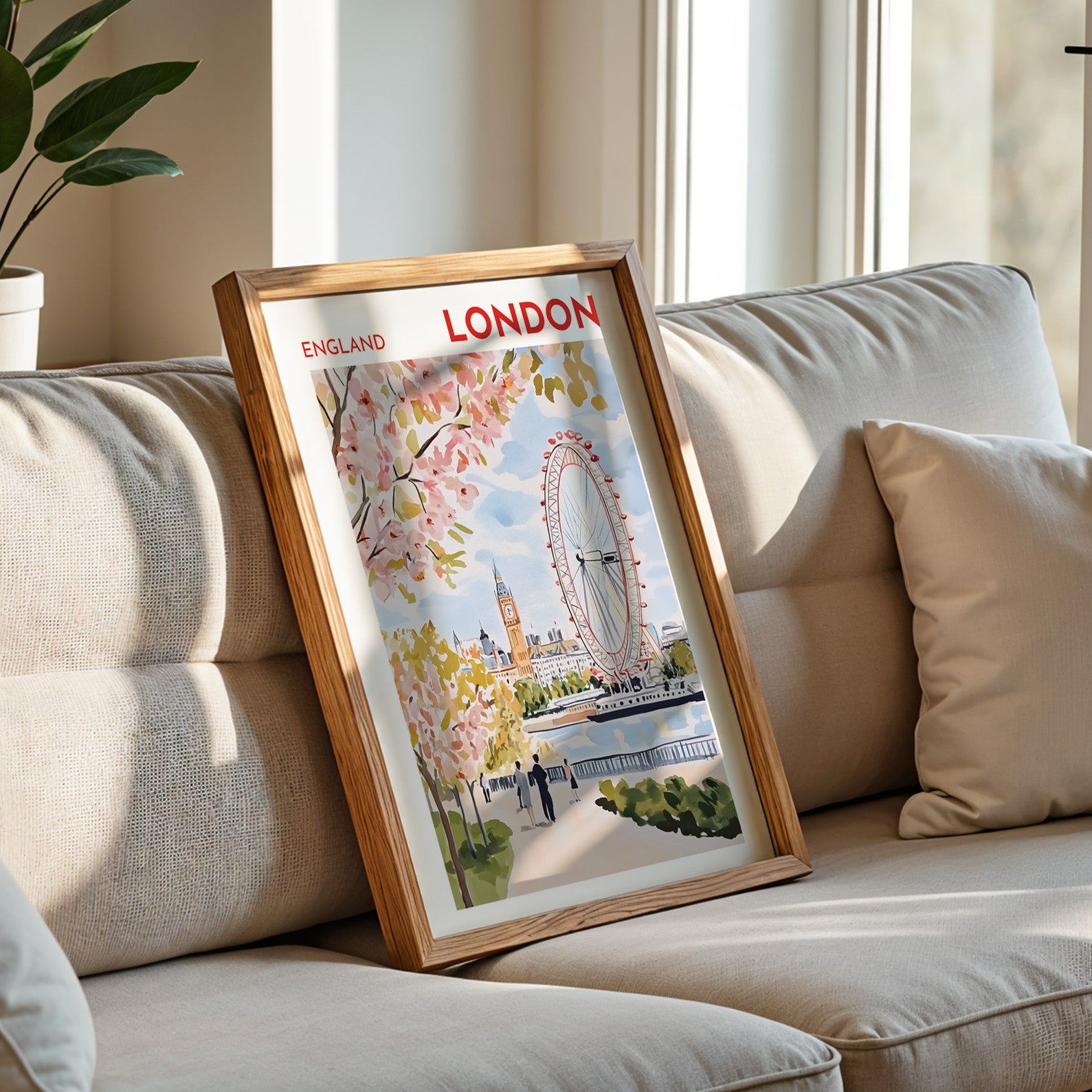 Illustrated in a soft, painterly style, this London wall art brings a sense of calm and charm to any room. Perfect for lovers of London landmarks, travel art, or modern British décor, it evokes the romance and energy of springtime in the city.