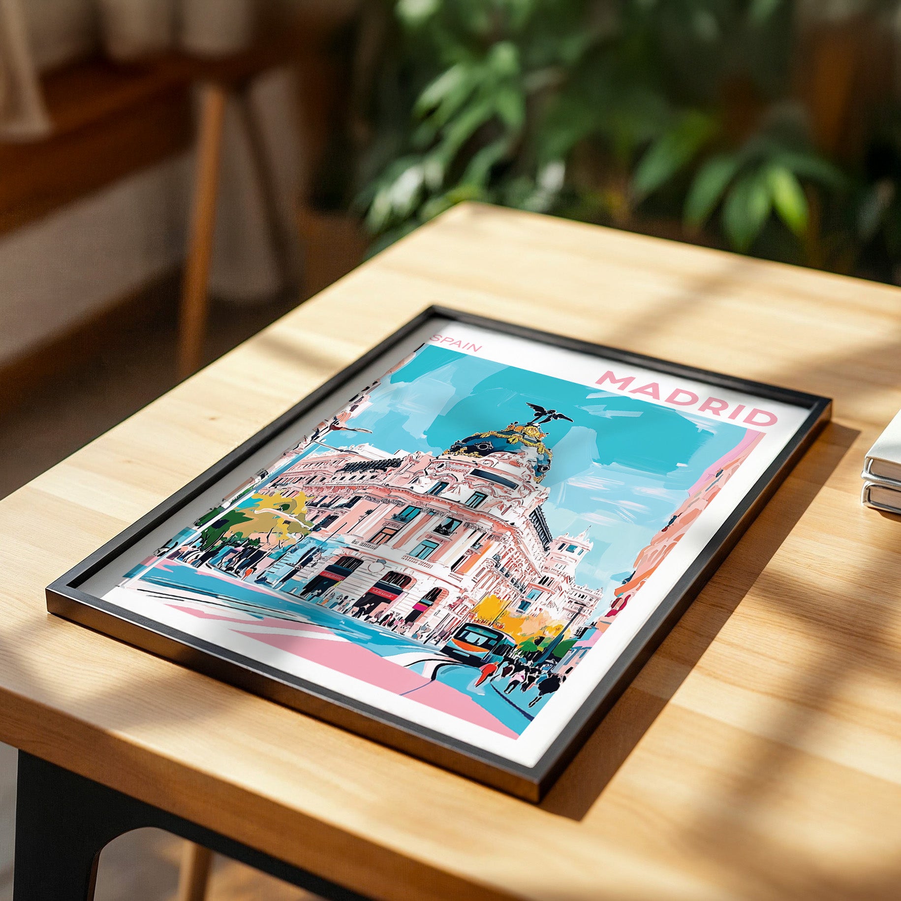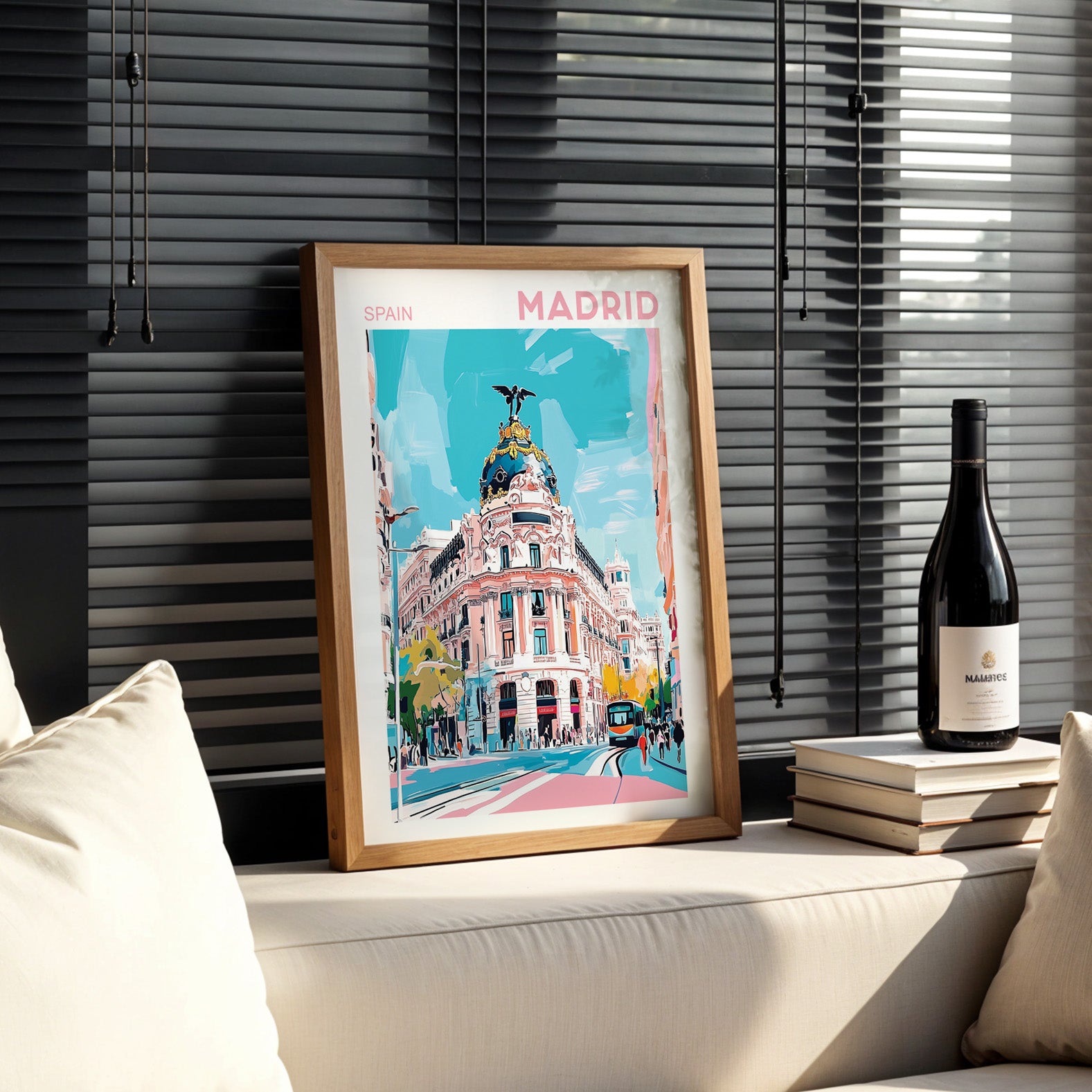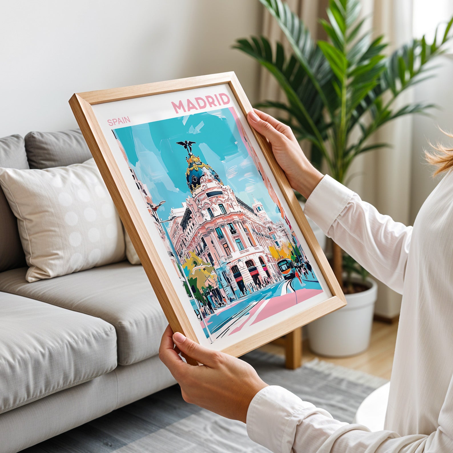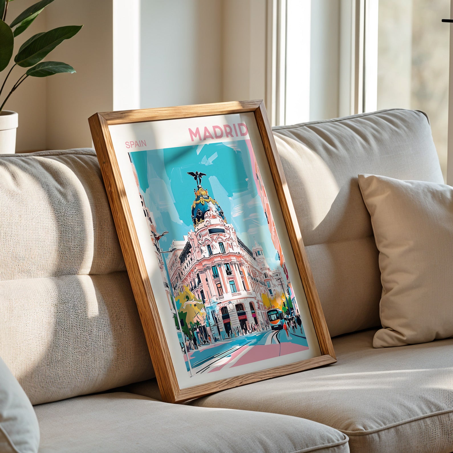 Ideal for admirers of Spain, European cities, and travel posters, this piece is a timeless reminder of Madrid’s energy and beauty.