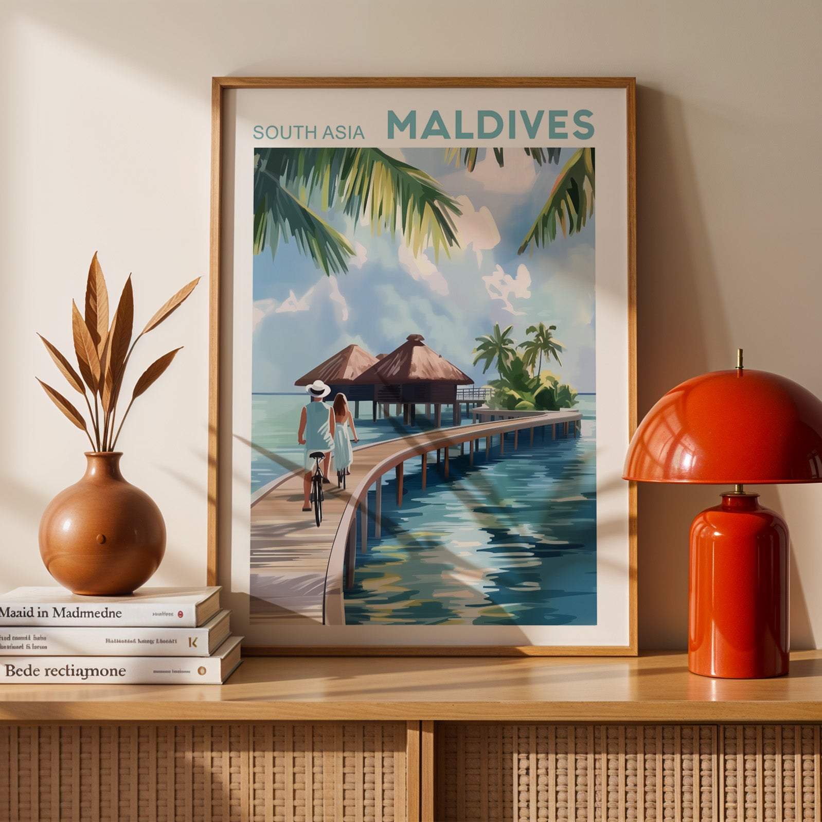 Illustrated in a tranquil painterly style, this Maldives wall art brings peace, warmth, and a sense of escape to your bedroom, living room, or holiday home.