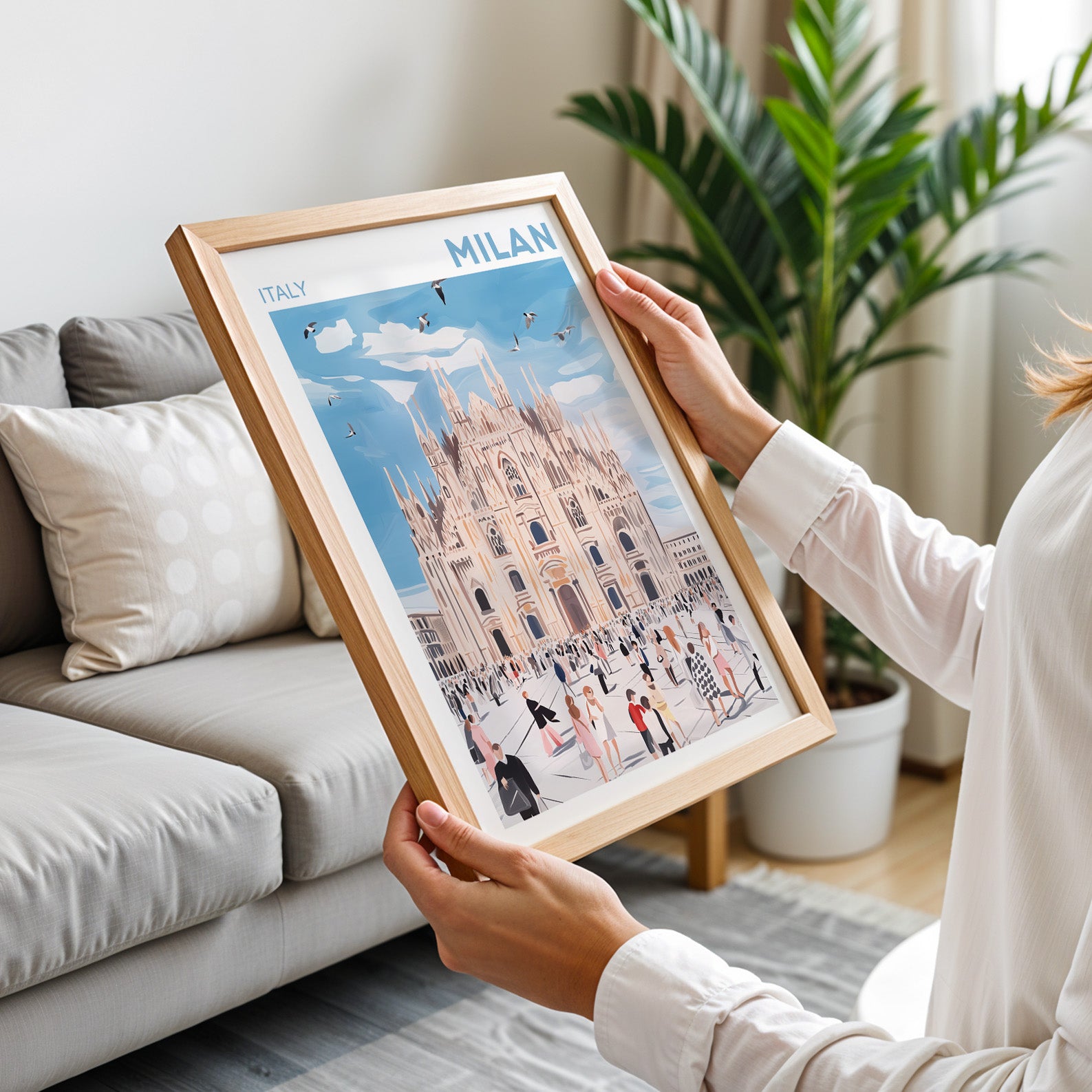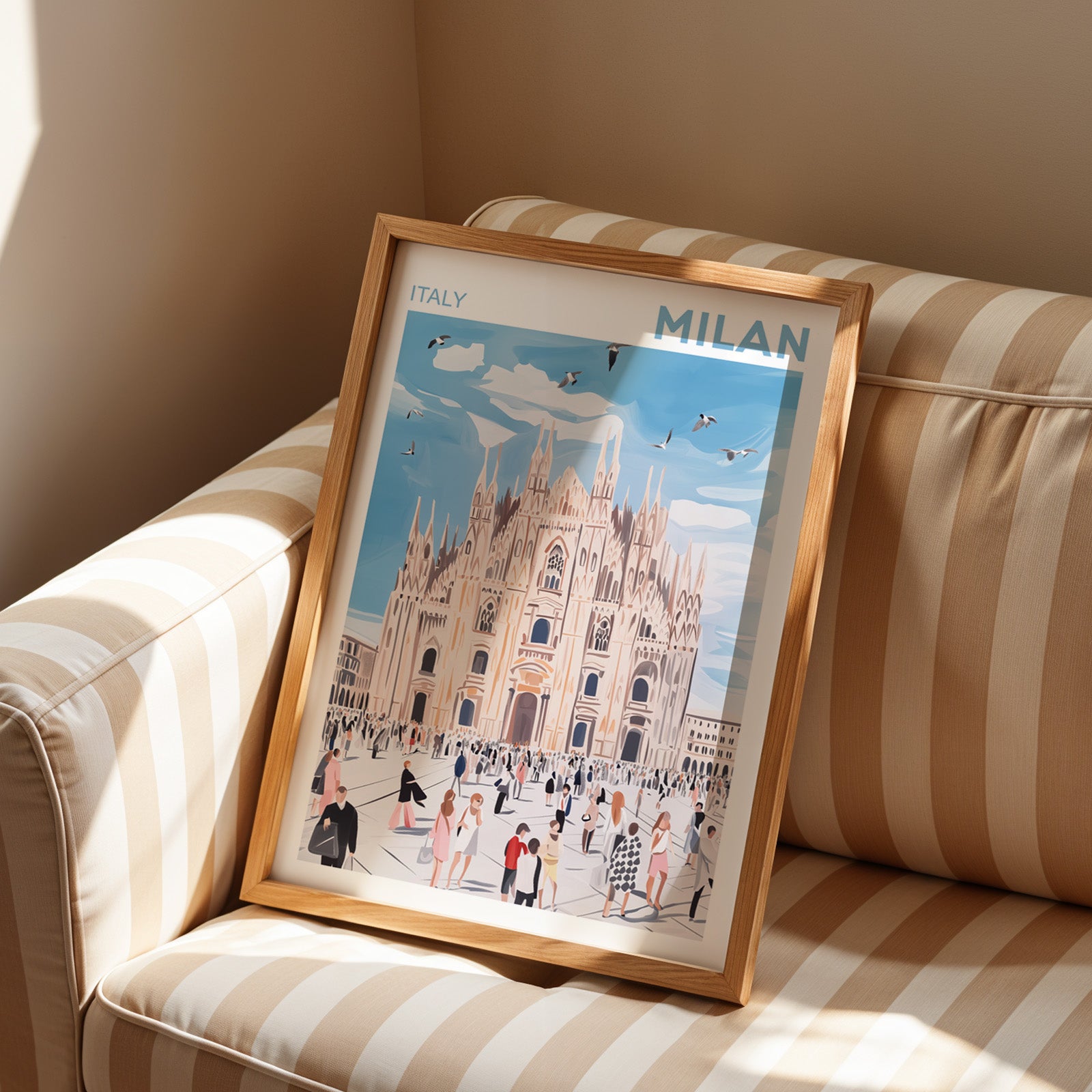 Perfect for lovers of Italy, architecture, and travel art, this print captures the spirit and elegance of Milan — the heart of Italian style.