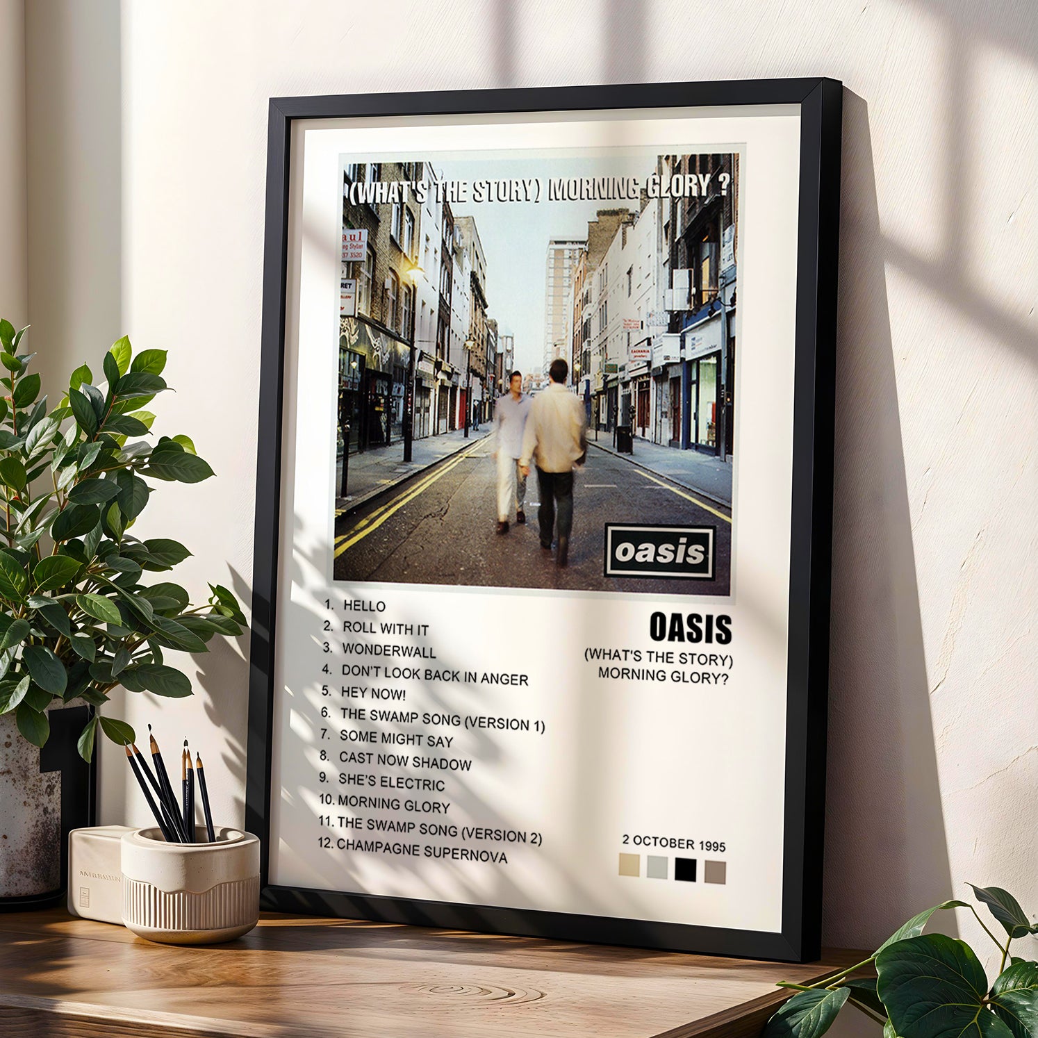Bring music into your home with these Oasis album cover posters, inspired by Definitely Maybe, (What’s the Story) Morning Glory?, Be Here Now and The Masterplan.