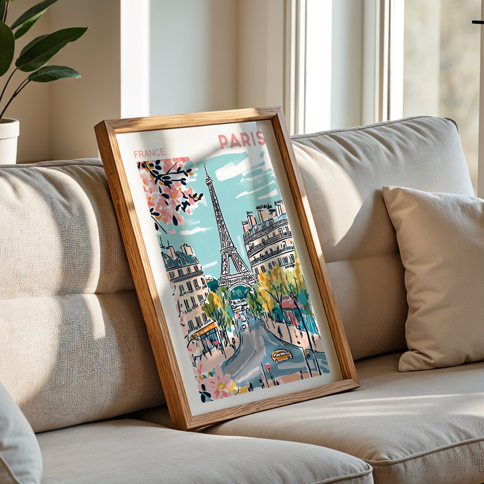 Illustrated in a delicate painterly style, this Paris wall art evokes the timeless elegance and beauty of the City of Light. Perfect for adding a touch of Parisian charm to your living room, bedroom, or workspace.