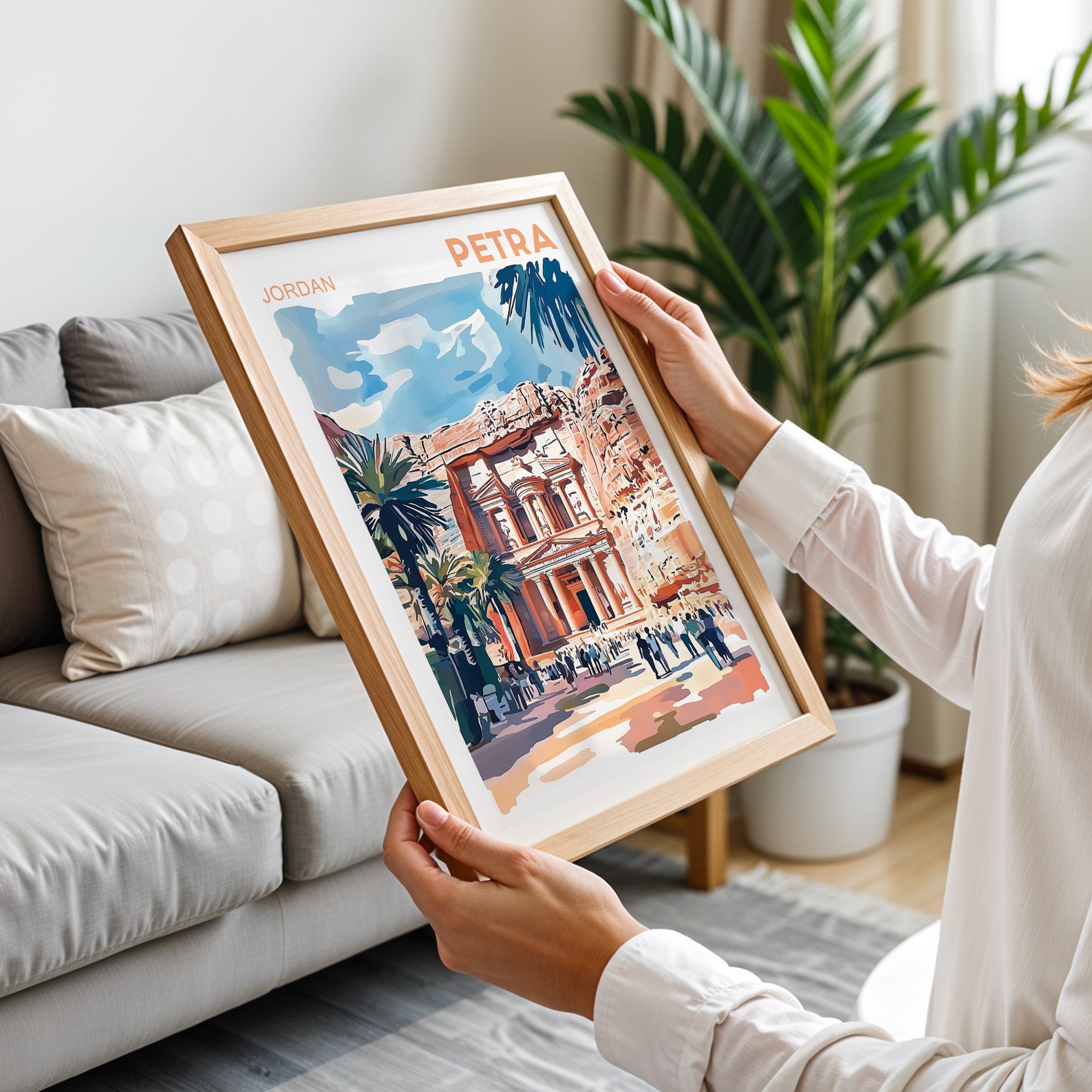 Illustrated in a rich painterly style, this Petra wall art evokes adventure, mystery, and ancient beauty — perfect for adding warmth and depth to your living room, study, or hallway.