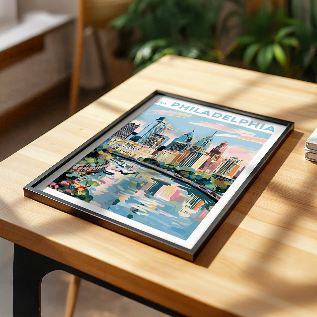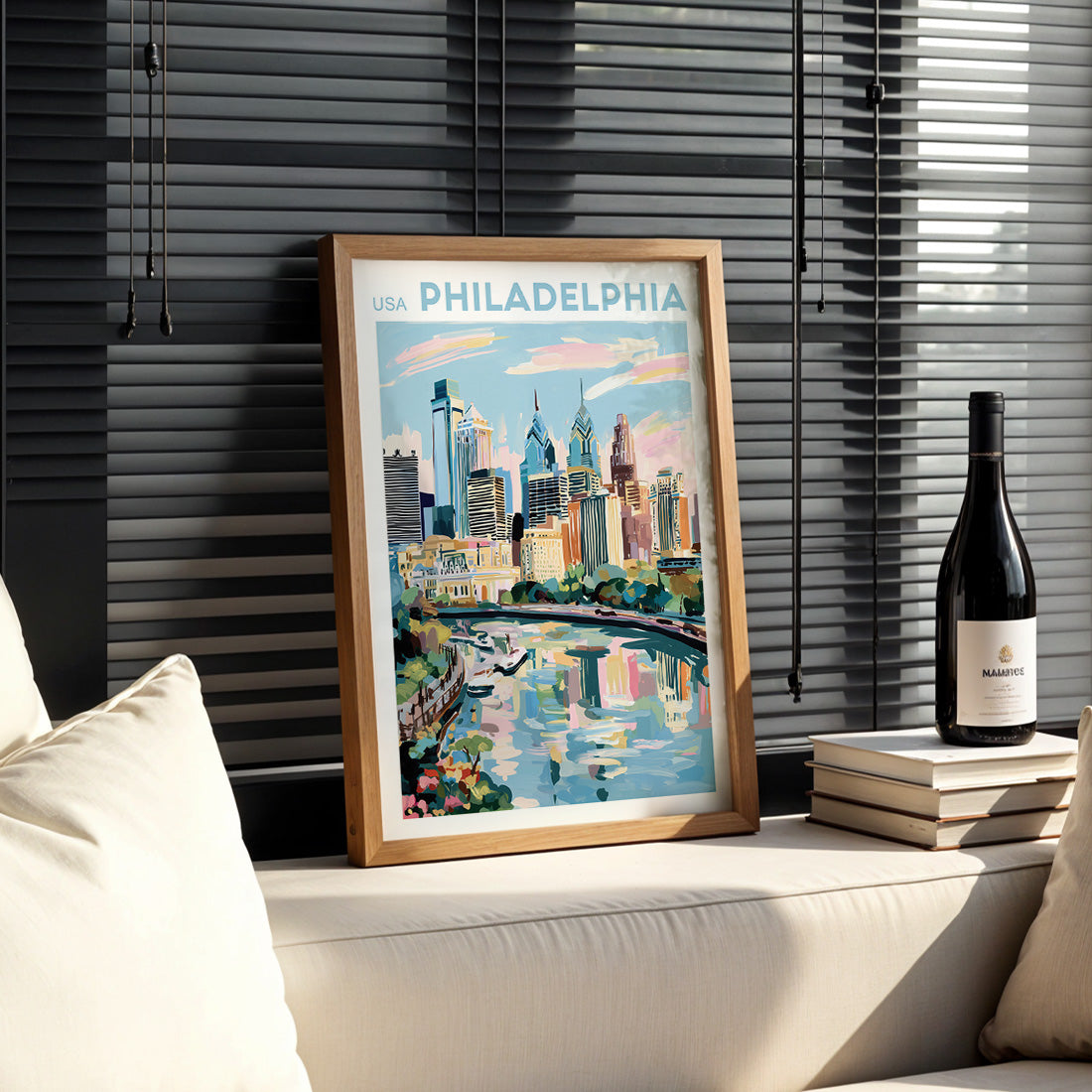 Illustrated in a painterly contemporary style, this Philadelphia wall art adds culture and sophistication to any room, making it perfect for a study, hallway, or living space.