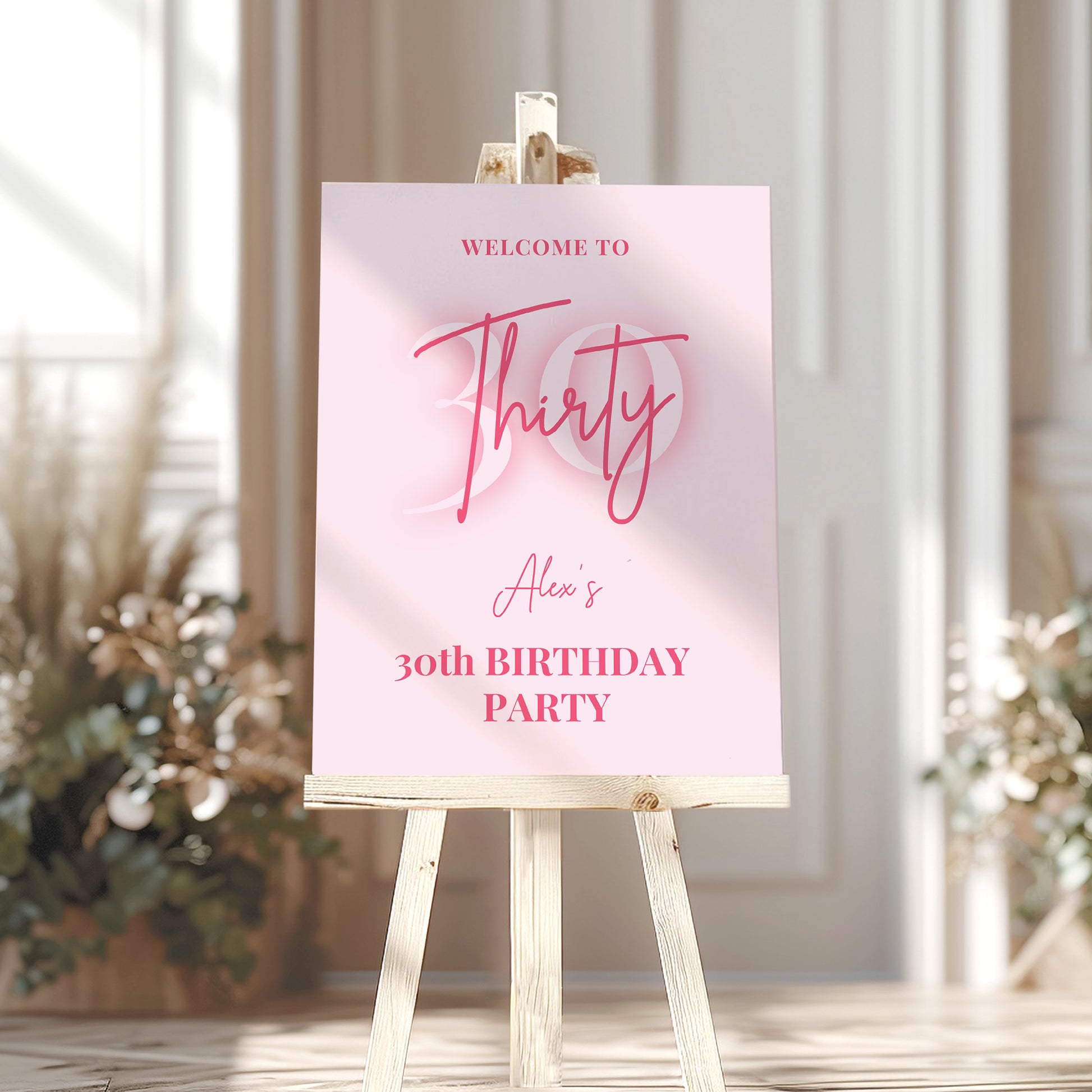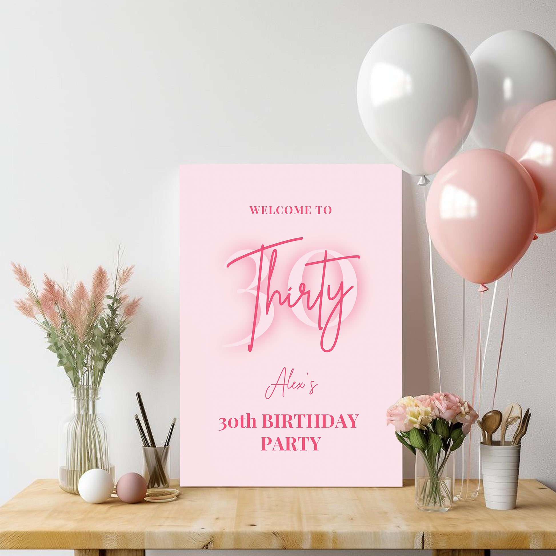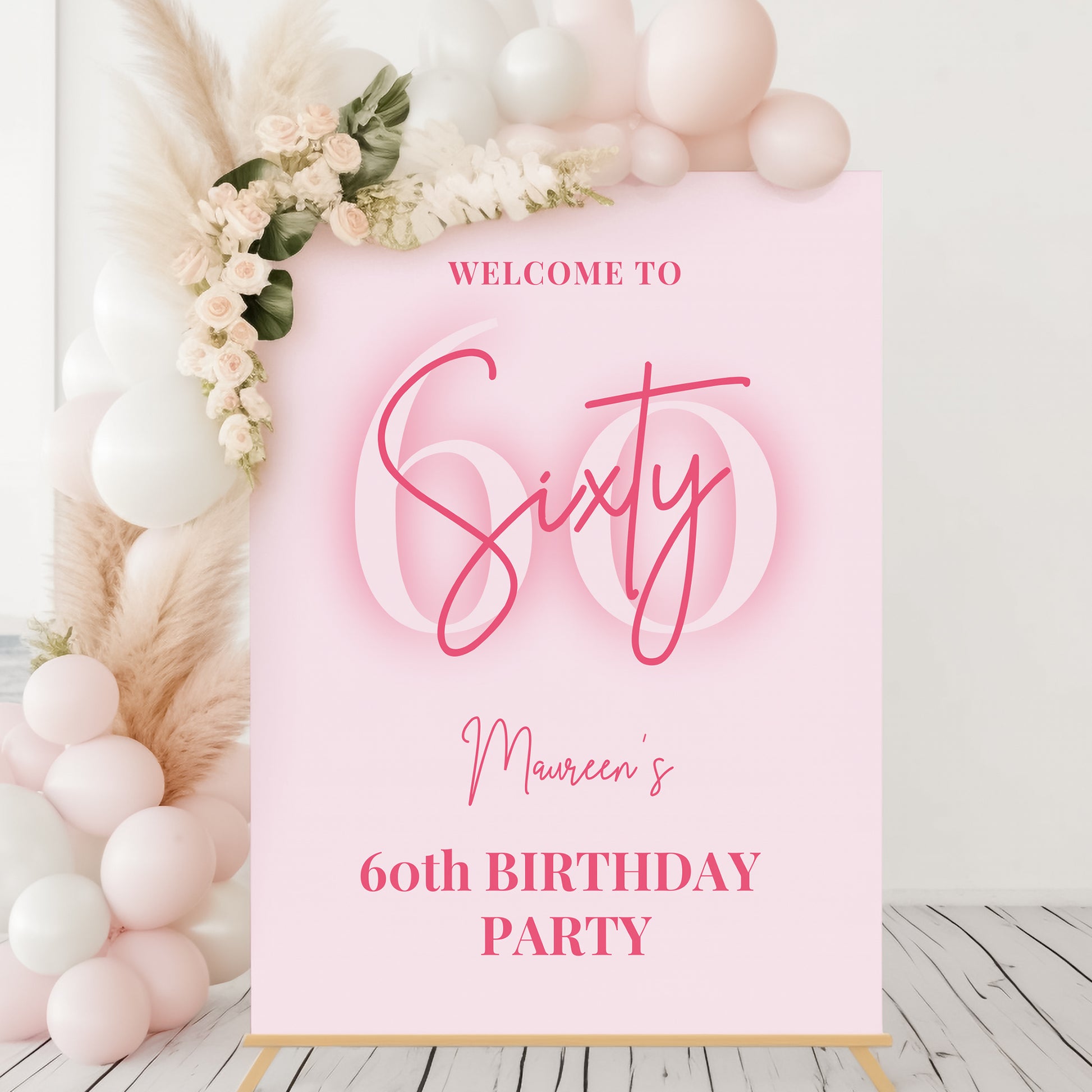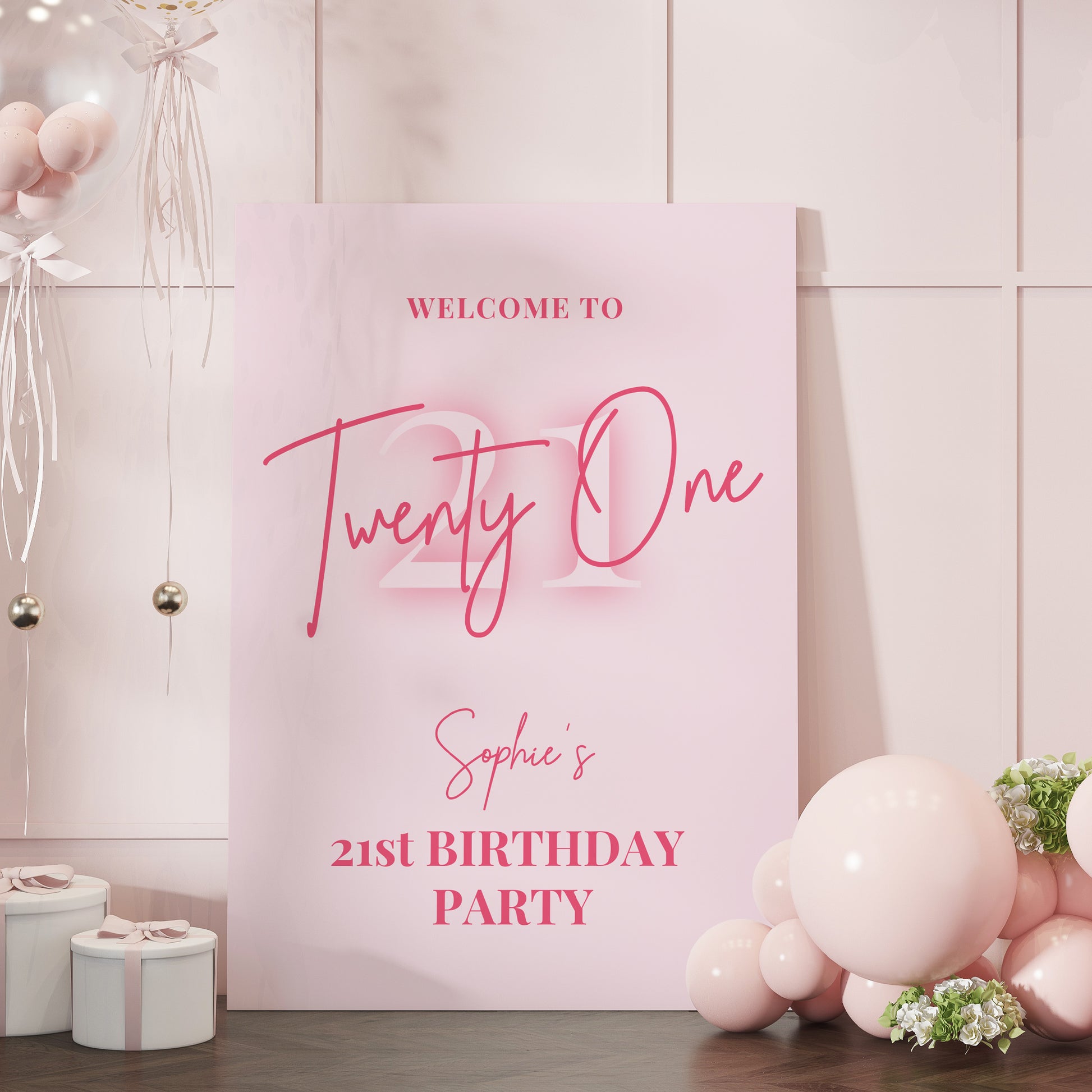 Neon Pink Birthday Party Welcome Sign - Any Age