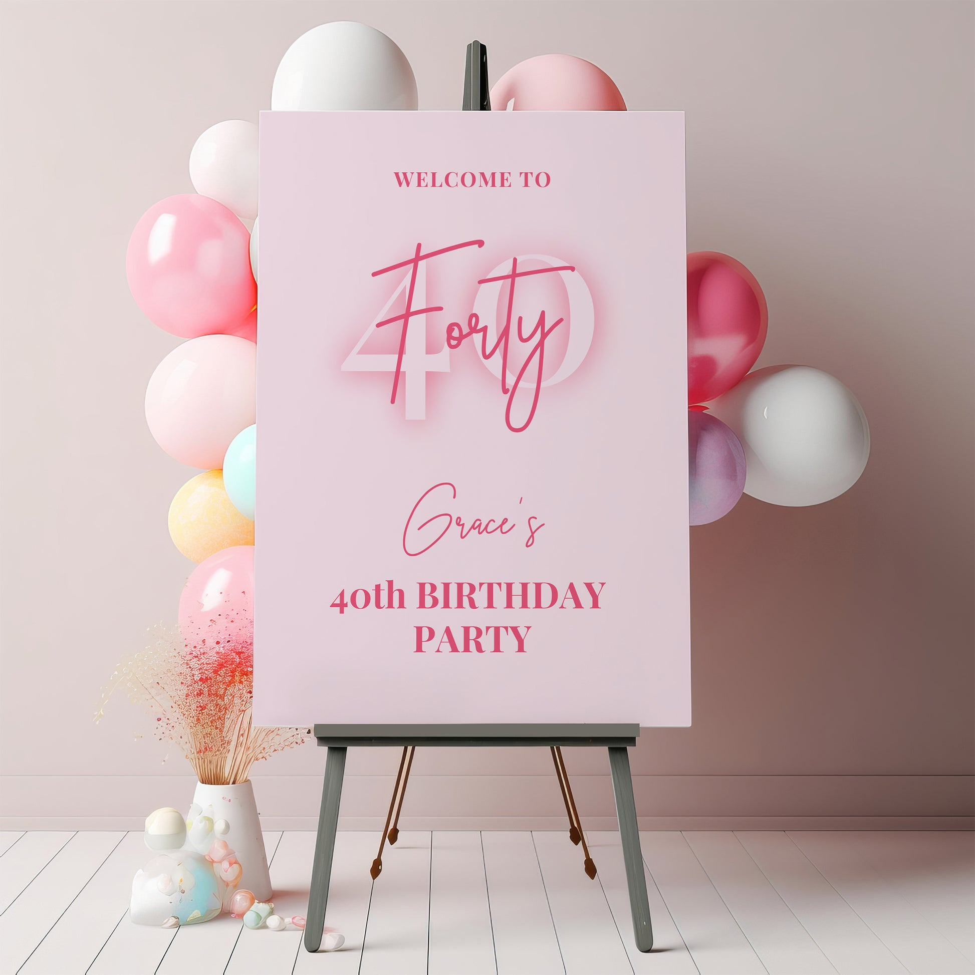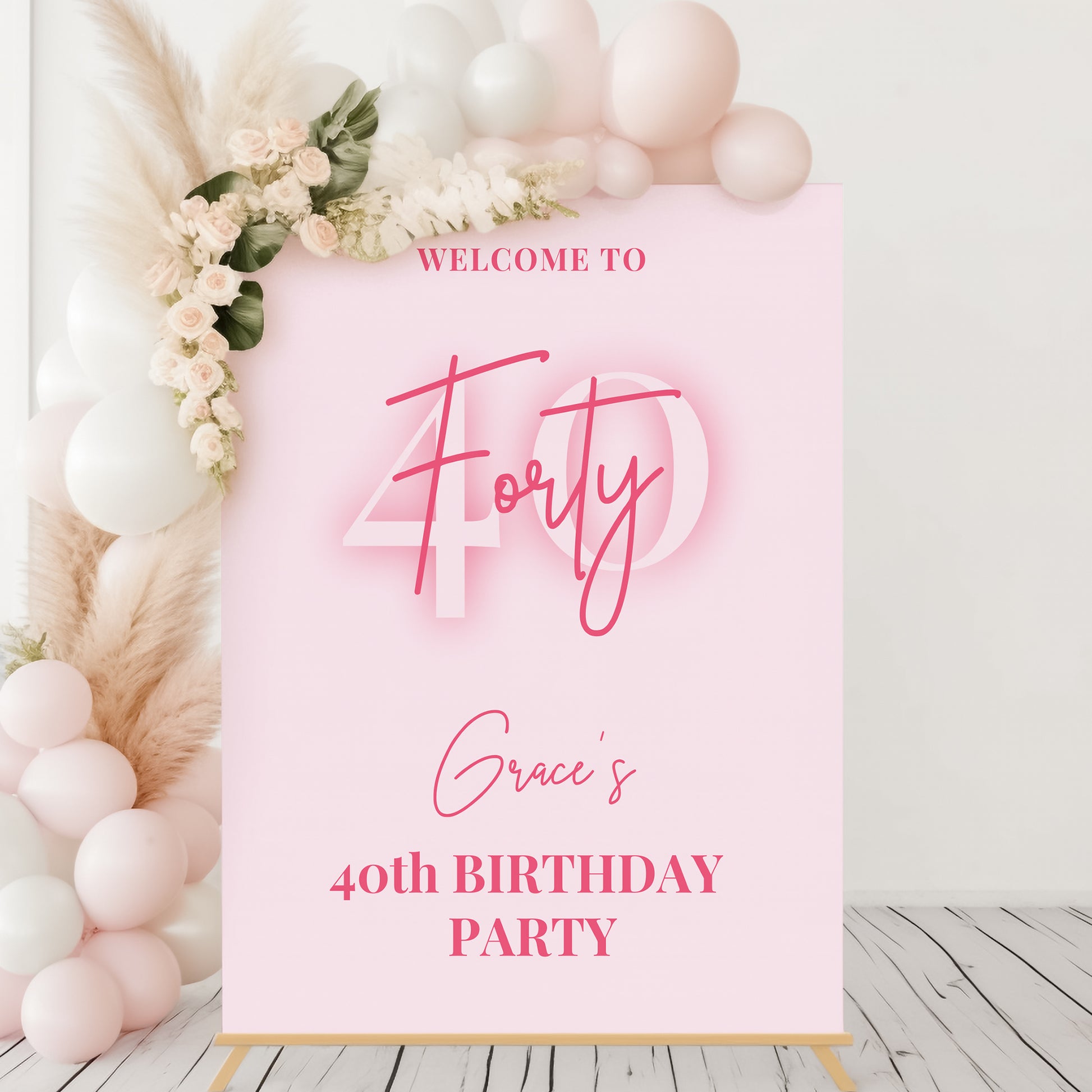This trendy neon pink welcome sign is just what you need to bring some fun to your 40th birthday party or birthday party for any age! This stylish welcome sign ticks all of the boxes for a fun night and will provide a fantastic welcome for your party guests.