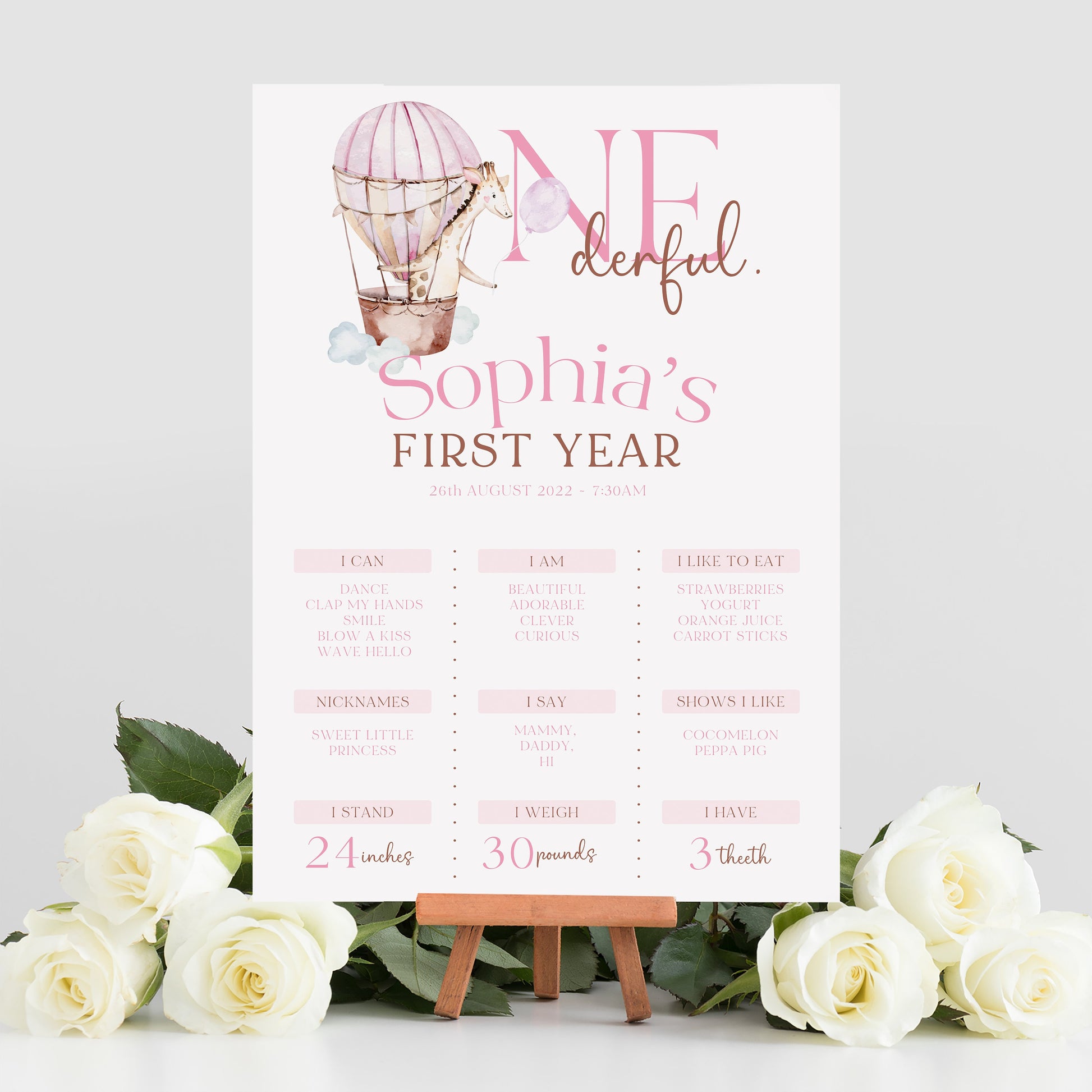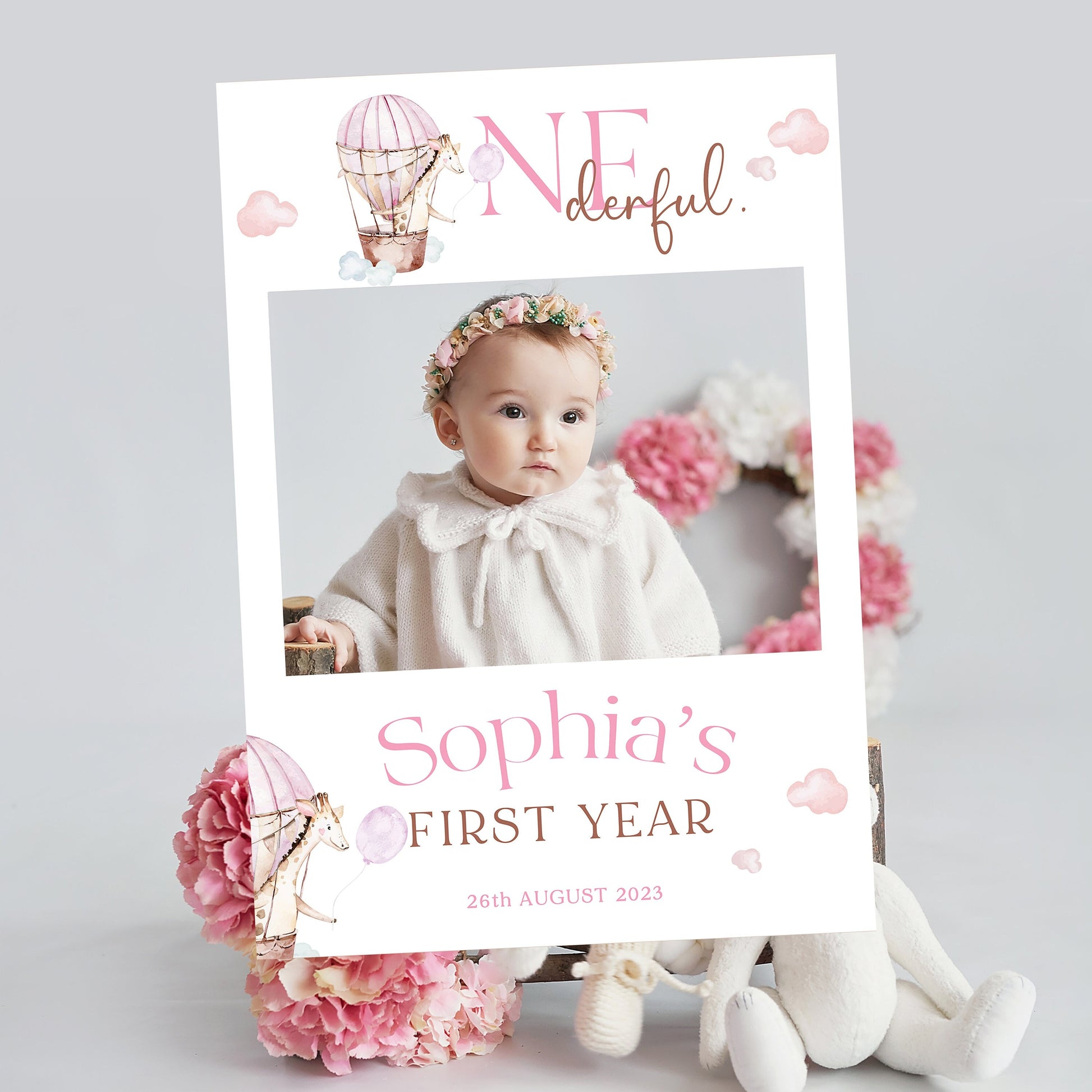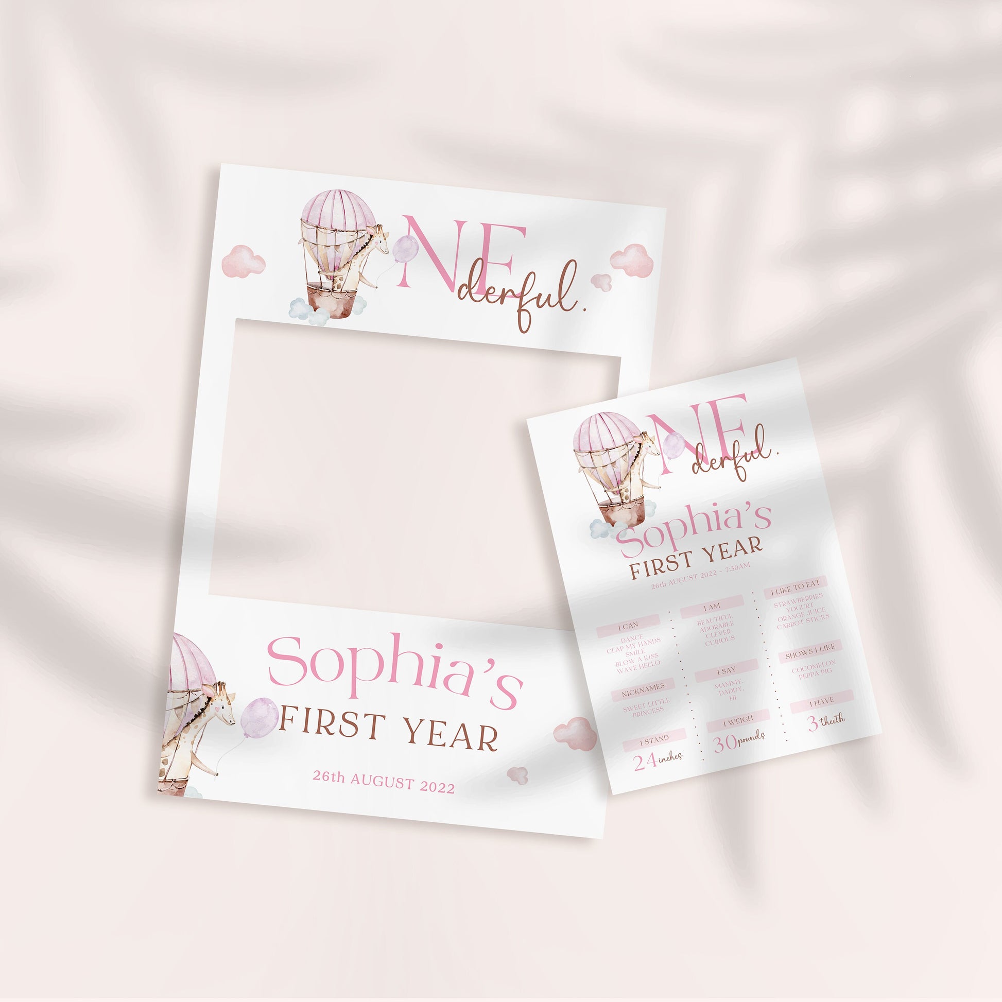 Pink OneDerful 1st Birthday Party Sign and Selfie Frame