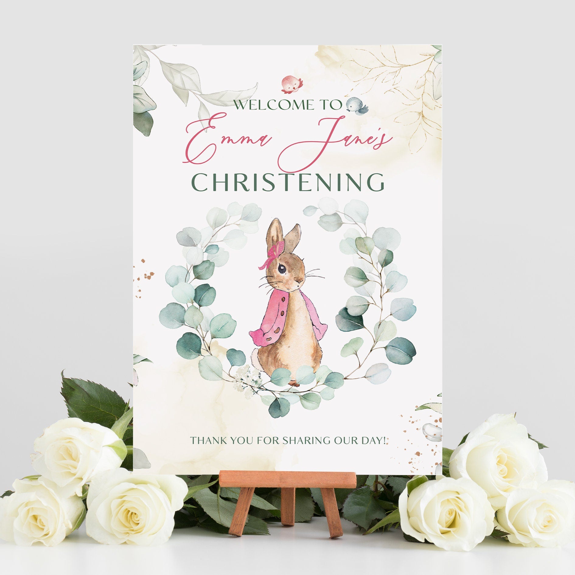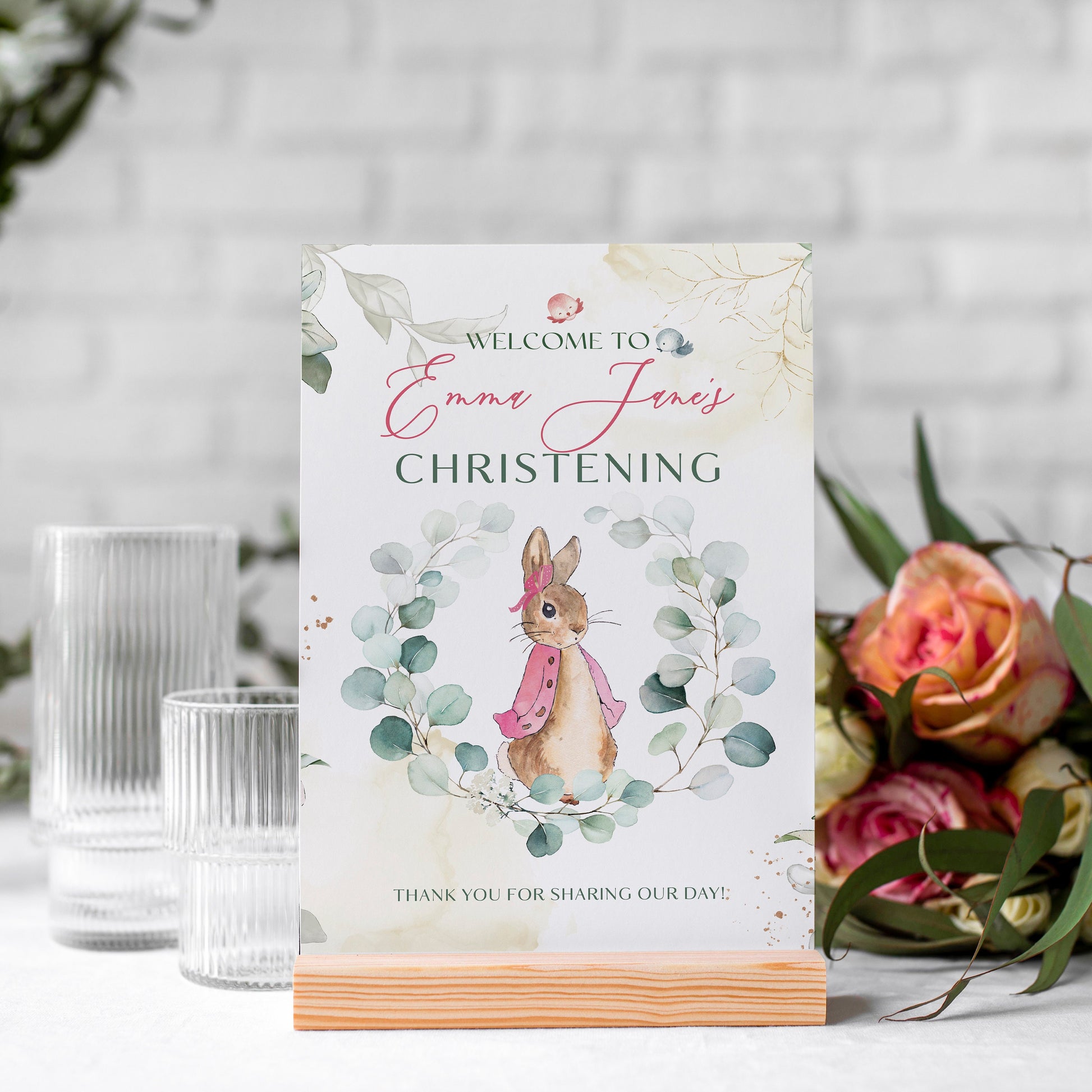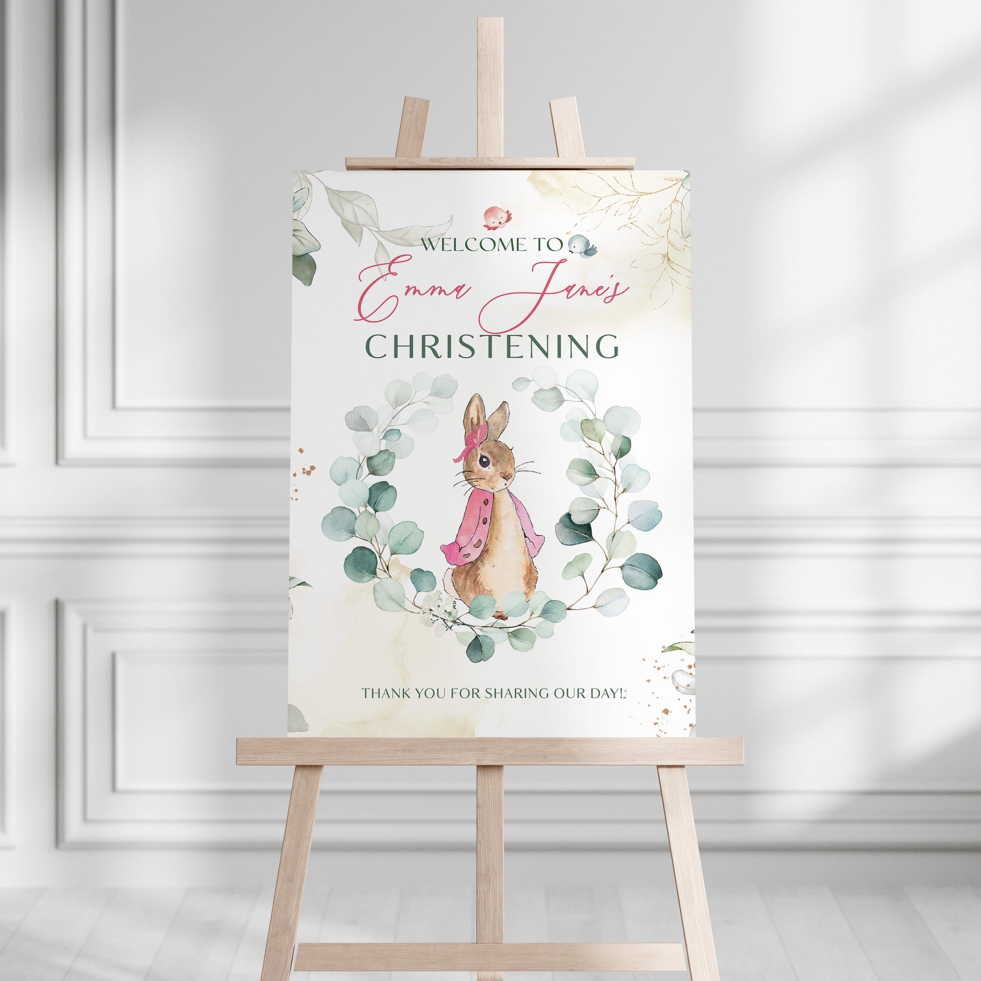 Add a touch of class to your Christening day with our Pink Peter Rabbit Christening Welcome Sign. Our welcome sign will help you create an exceptional way to welcome your guests, document the special day, and celebrate this wonderful occasion.