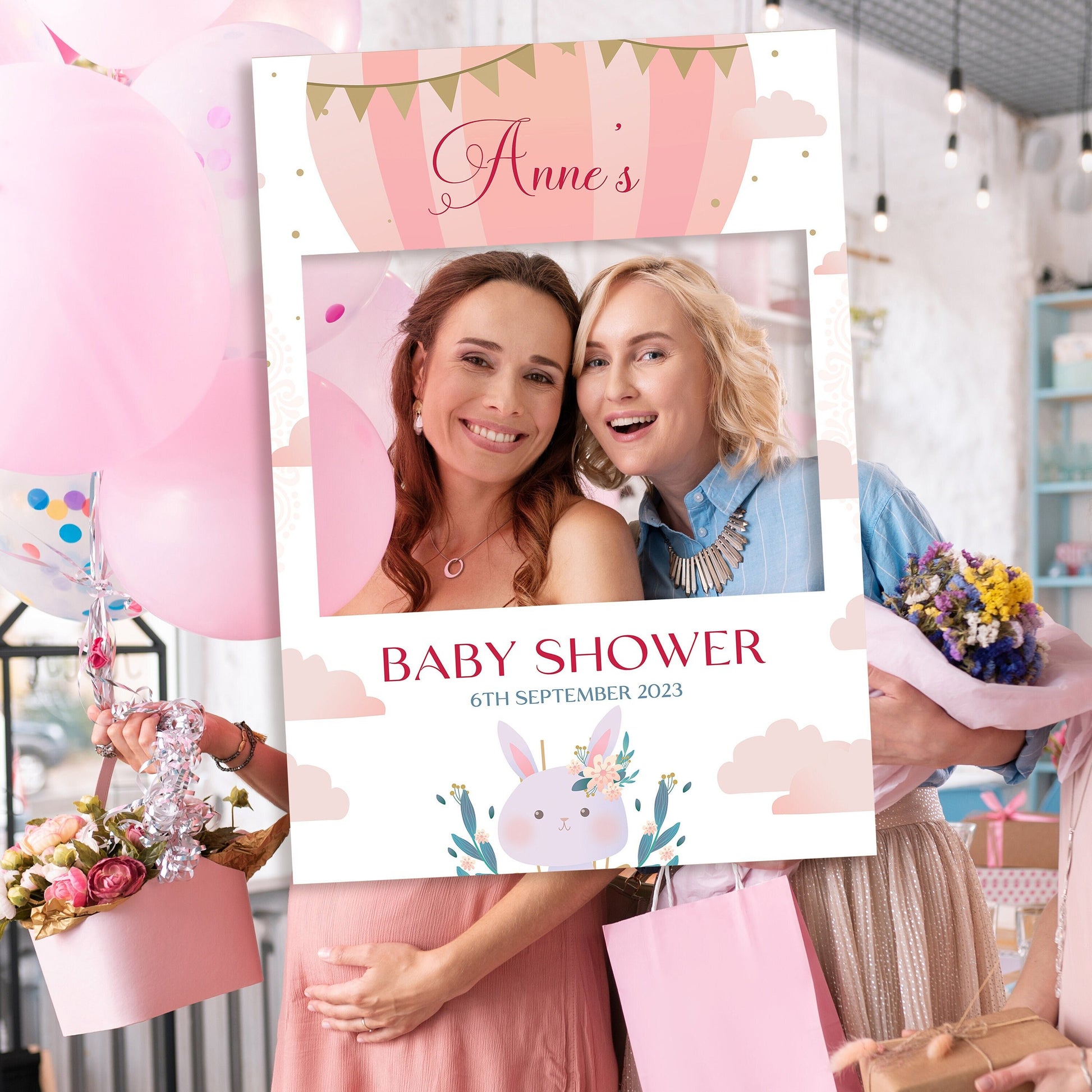 Pink Rabbit Baby Shower Selfie Frame