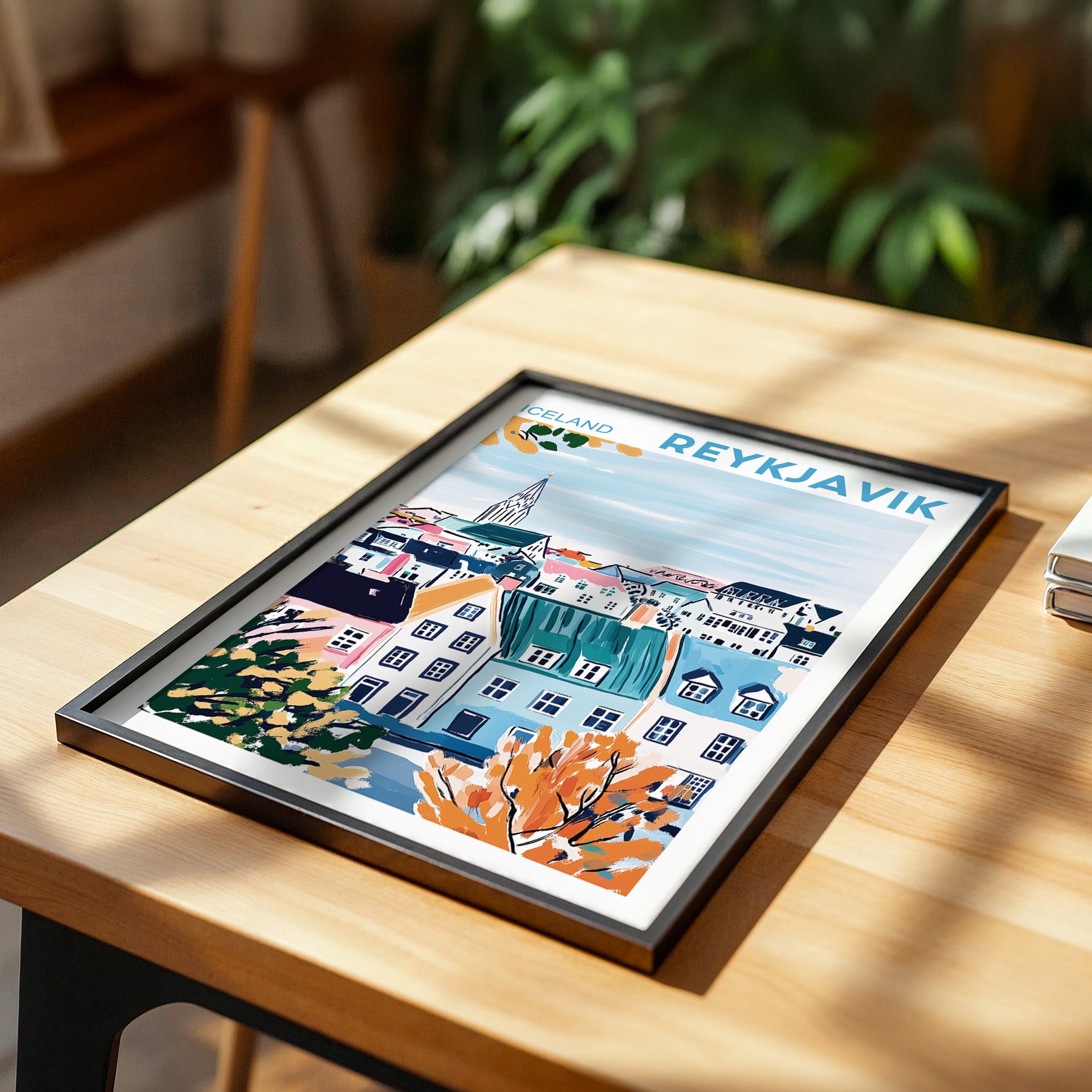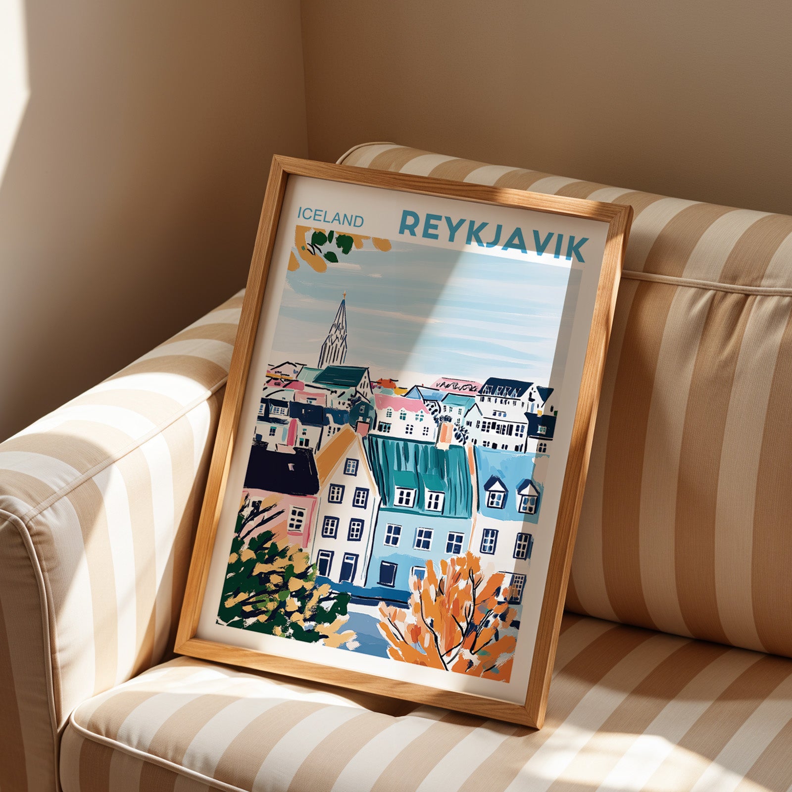 Illustrated in a crisp painterly style, this Reykjavík wall art radiates peace, clarity, and Scandinavian charm — perfect for a living room, office, or hallway.