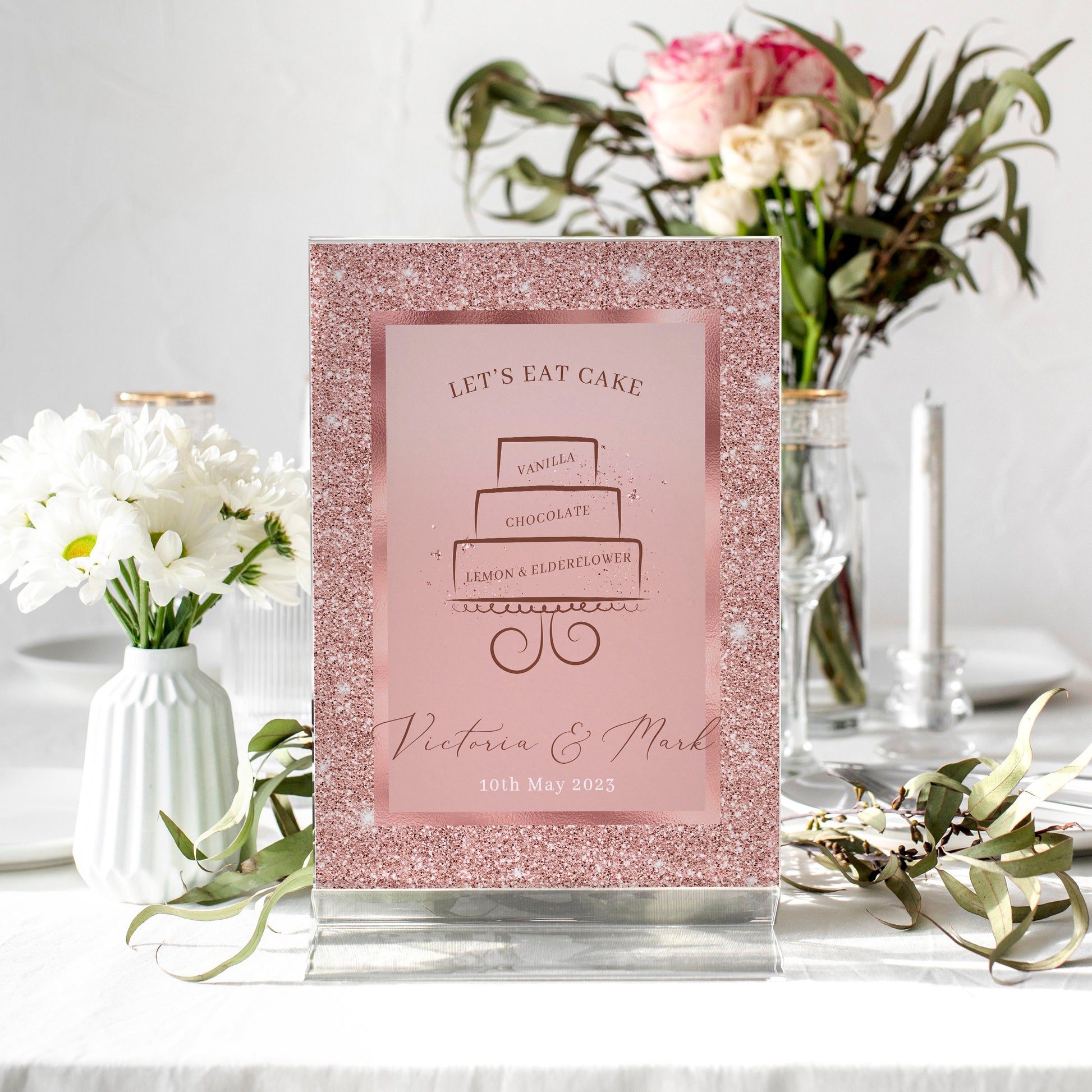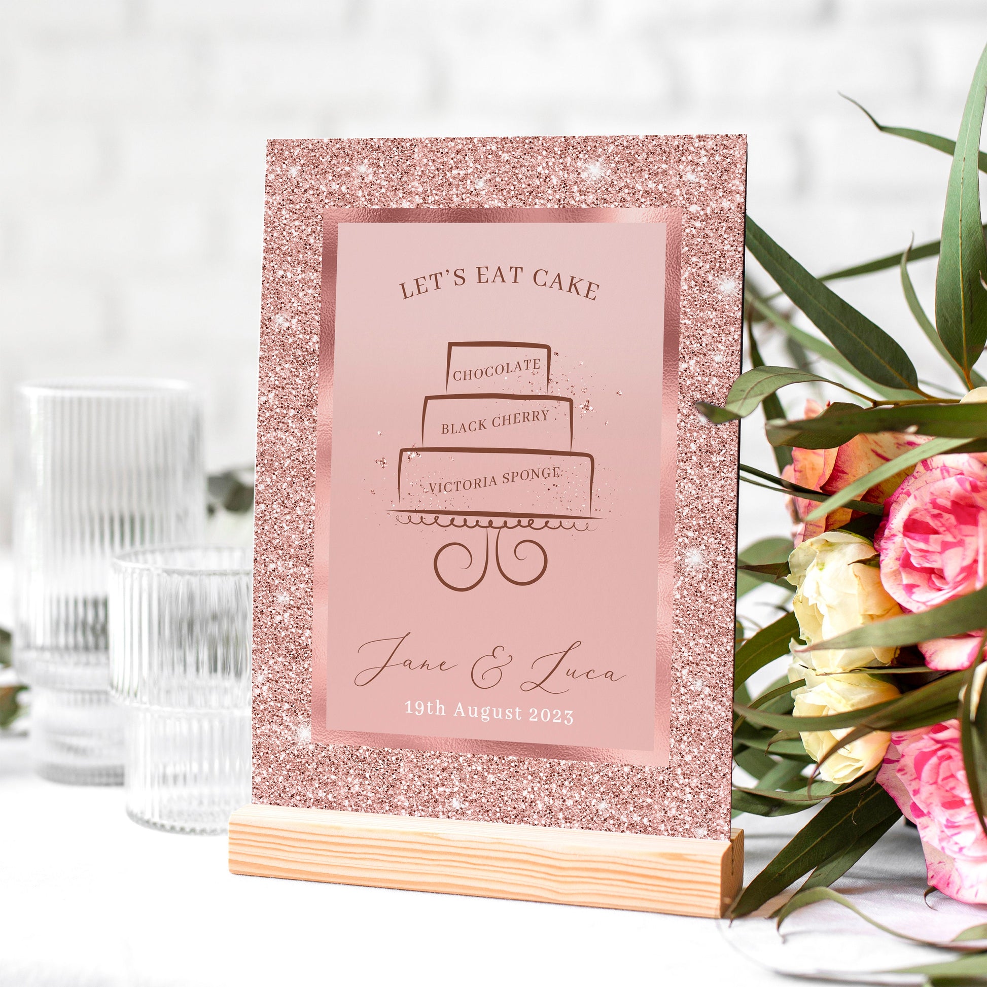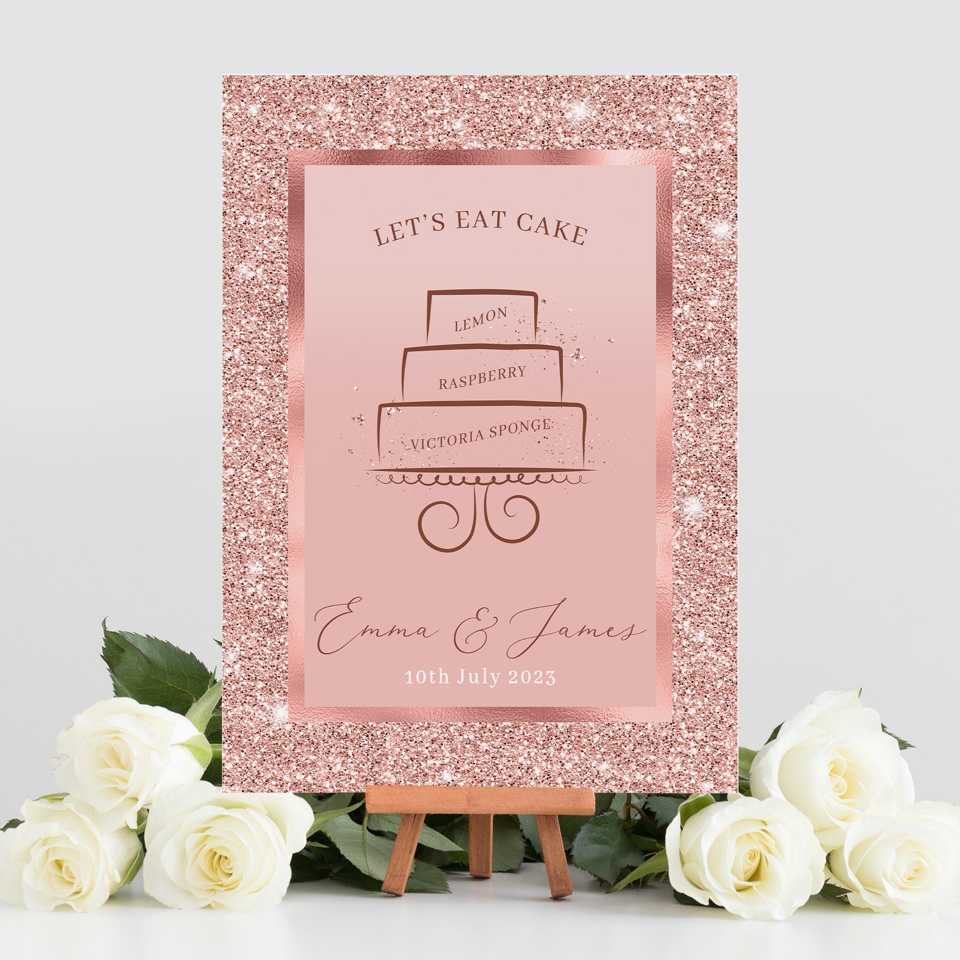 Rose Gold Wedding Cake Table Sign, Wedding Cake Flavour Sign, Let’s Eat Cake Sign, Dessert Bar Sign, Custom Wording Possible