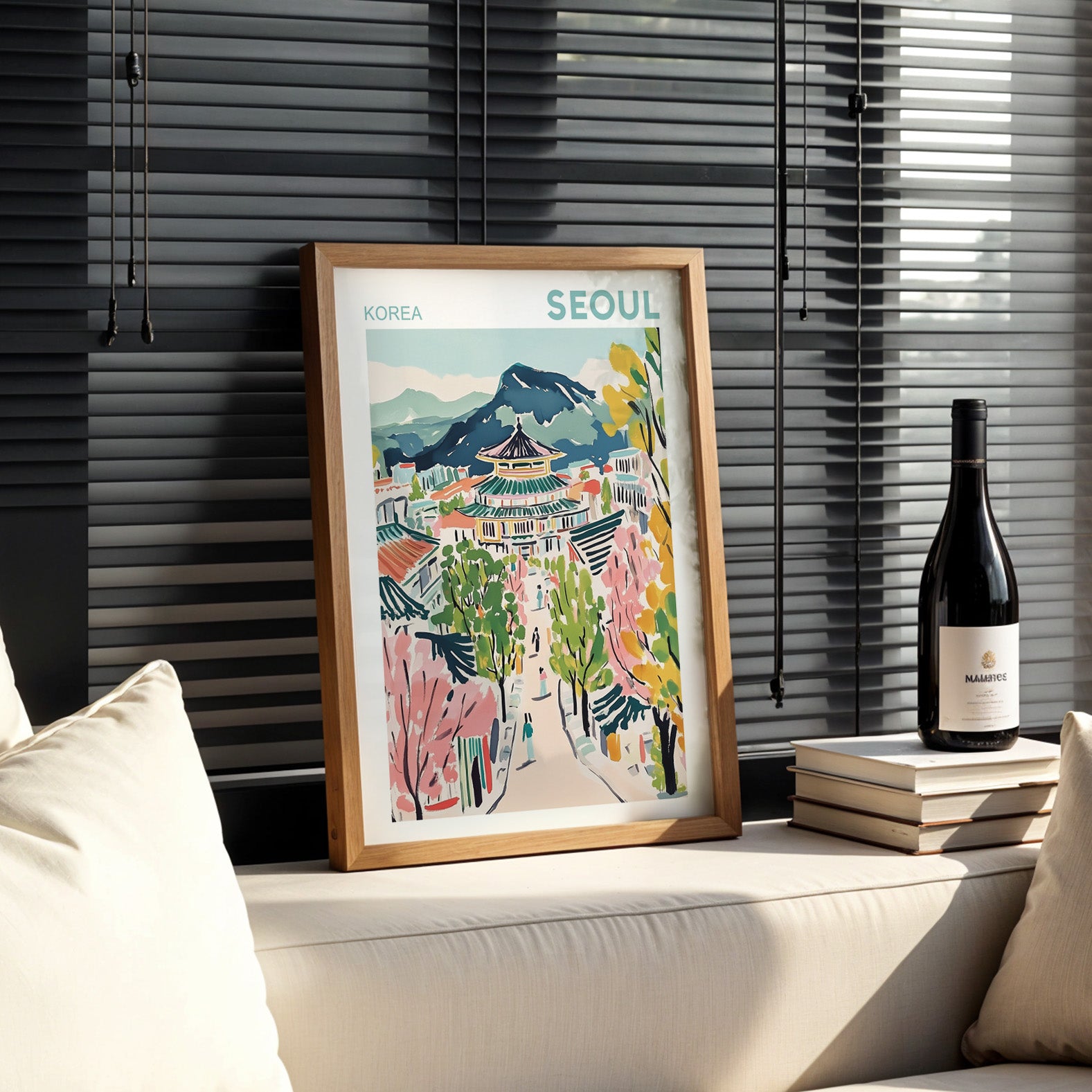 Perfect for admirers of Asian cities, architecture, and travel art, this print reflects the vibrant energy and elegance of Seoul.