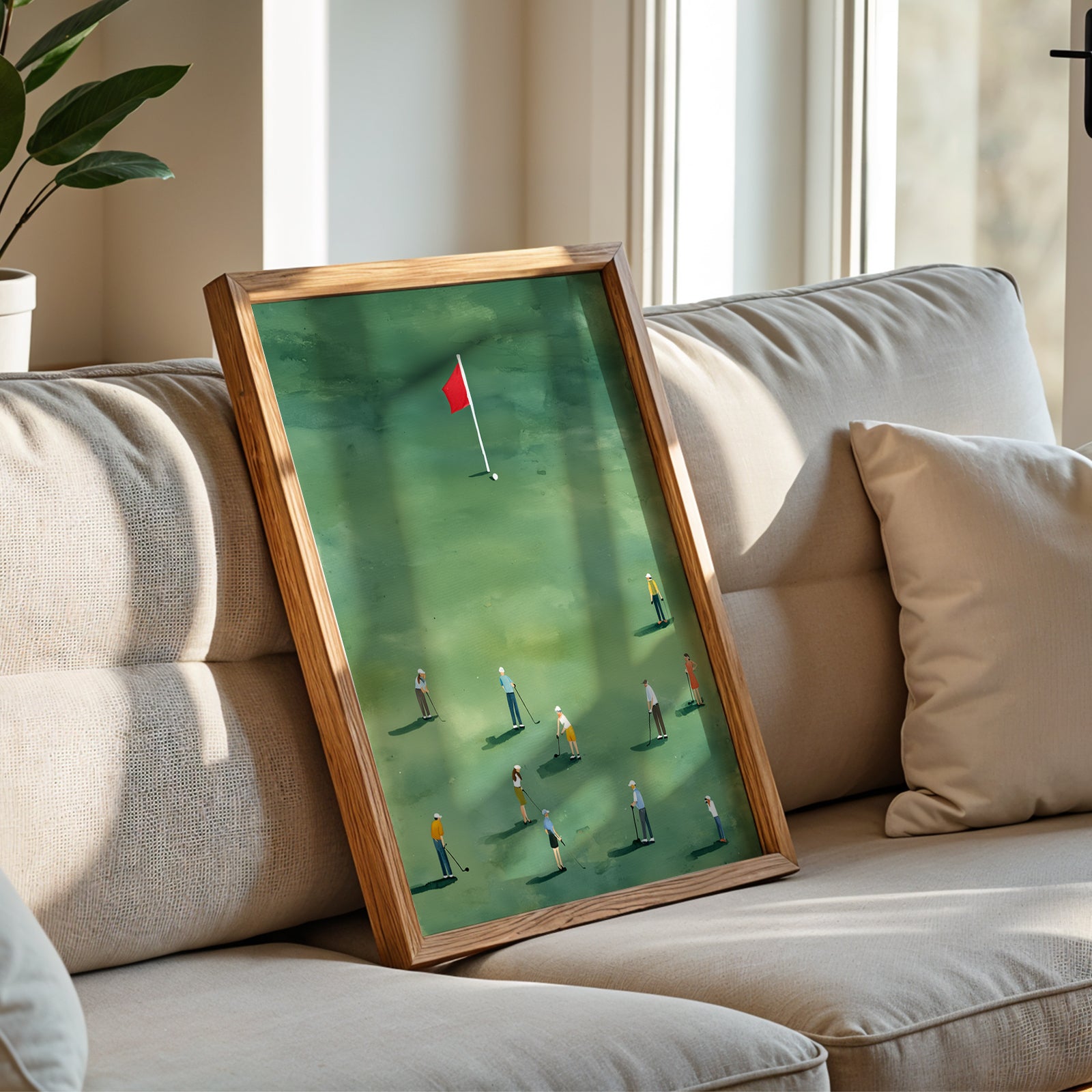 The prints feature McIlroy, Scheffler, and a simple scene of mini golfers out on the green — all done in clean, modern artwork that looks great together.