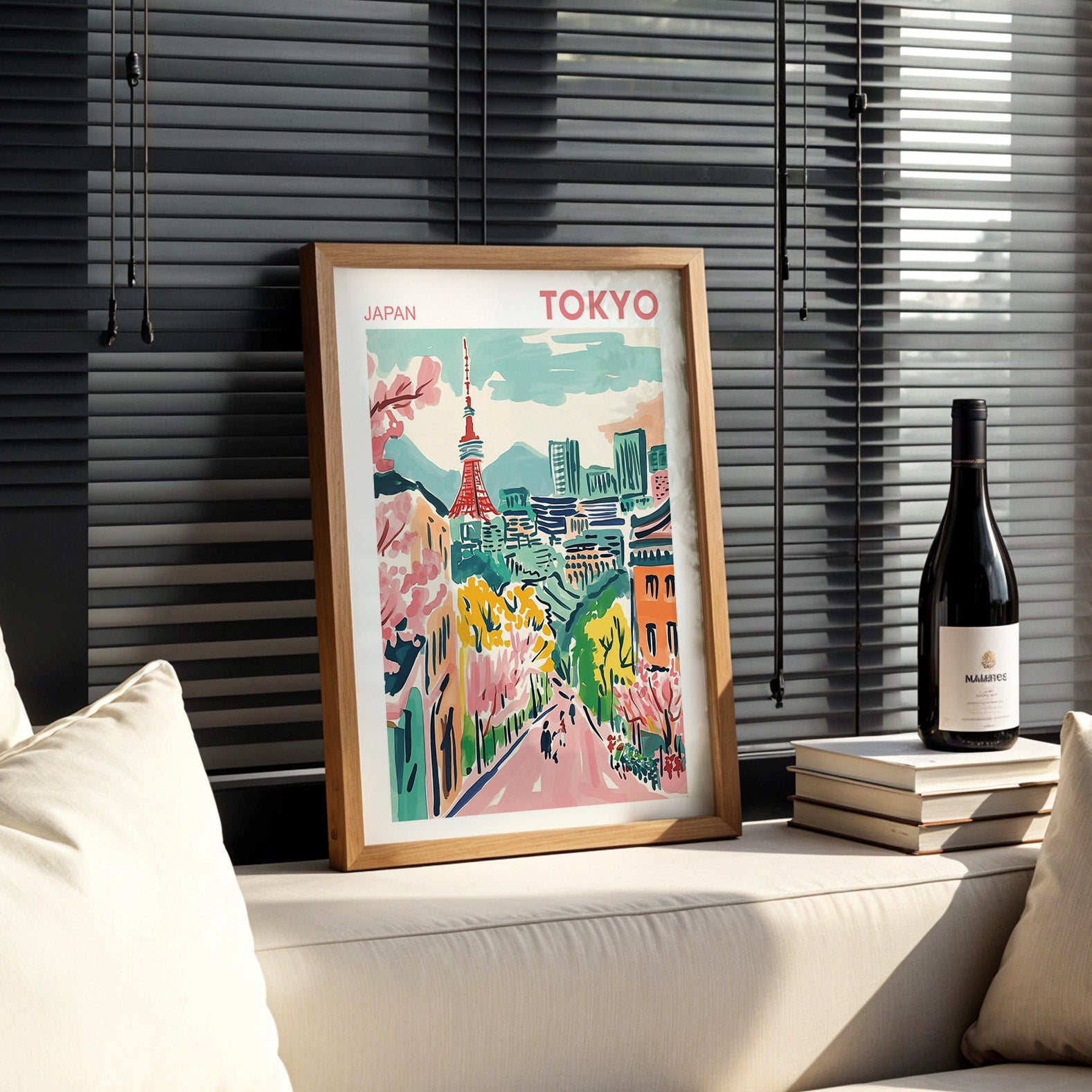 Illustrated in a bold painterly style, this Tokyo wall art brings colour, culture, and modern flair to your living room, office, or hallway.