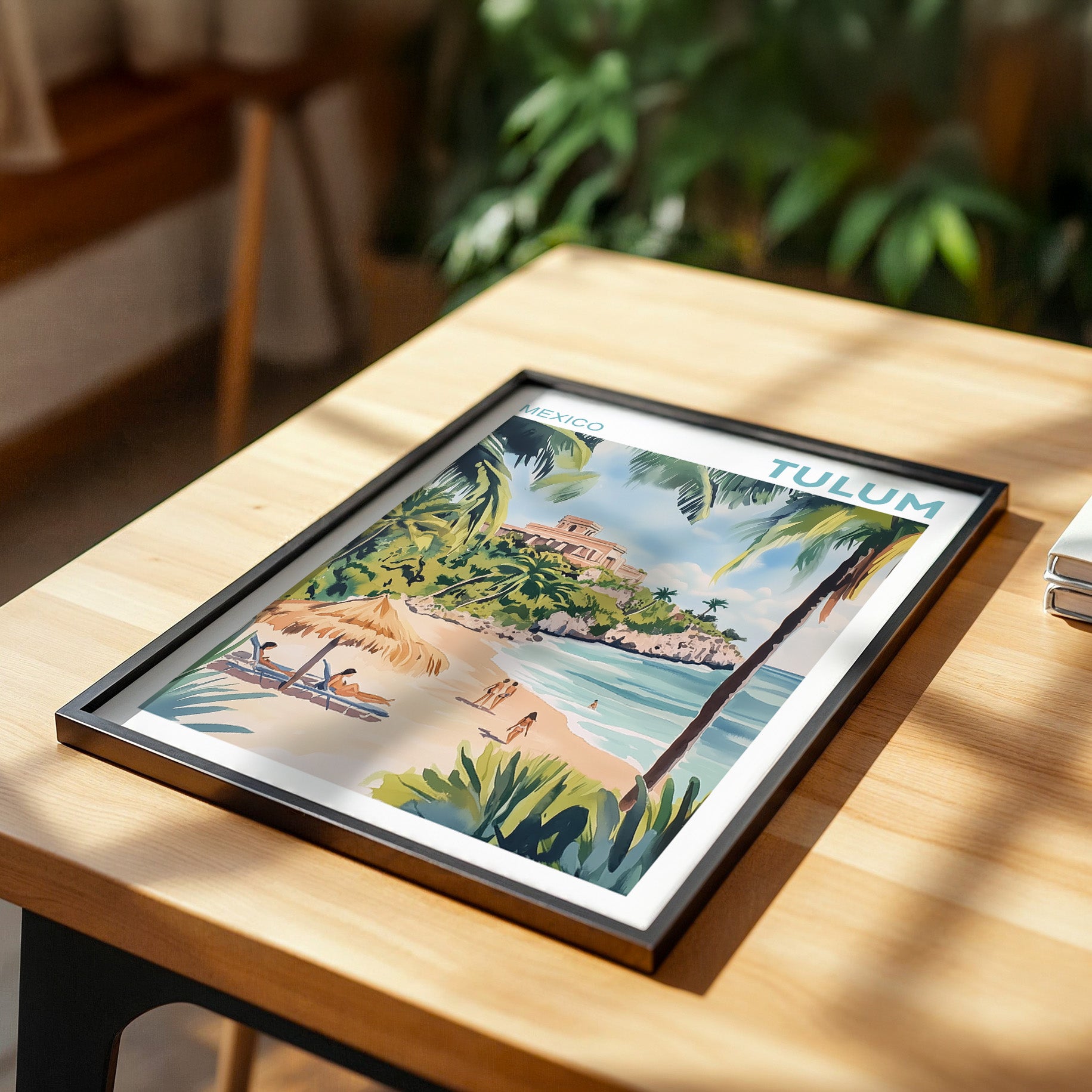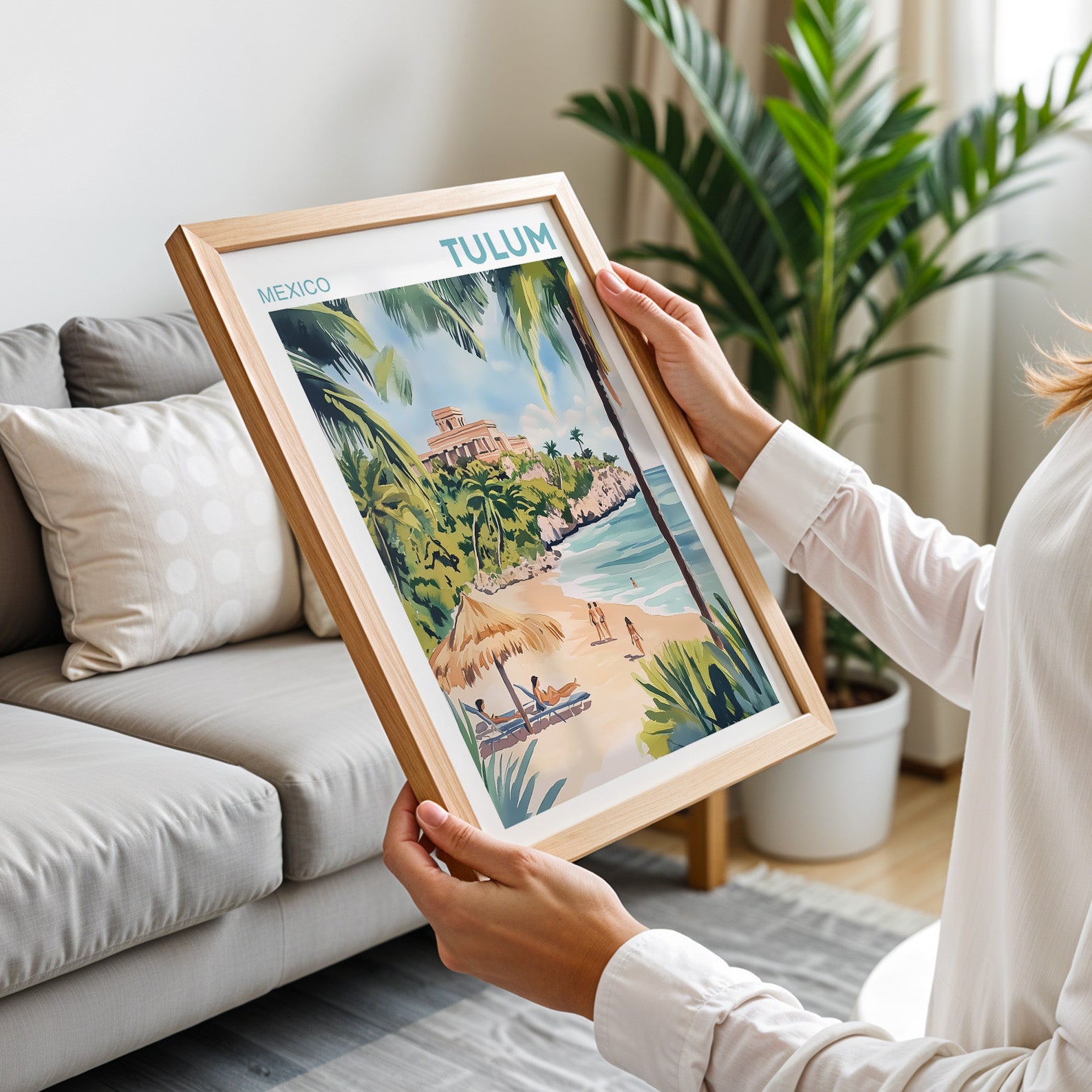 Ideal for admirers of beach destinations, travel, and bohemian décor, this print celebrates the laid-back elegance and natural beauty of Tulum.