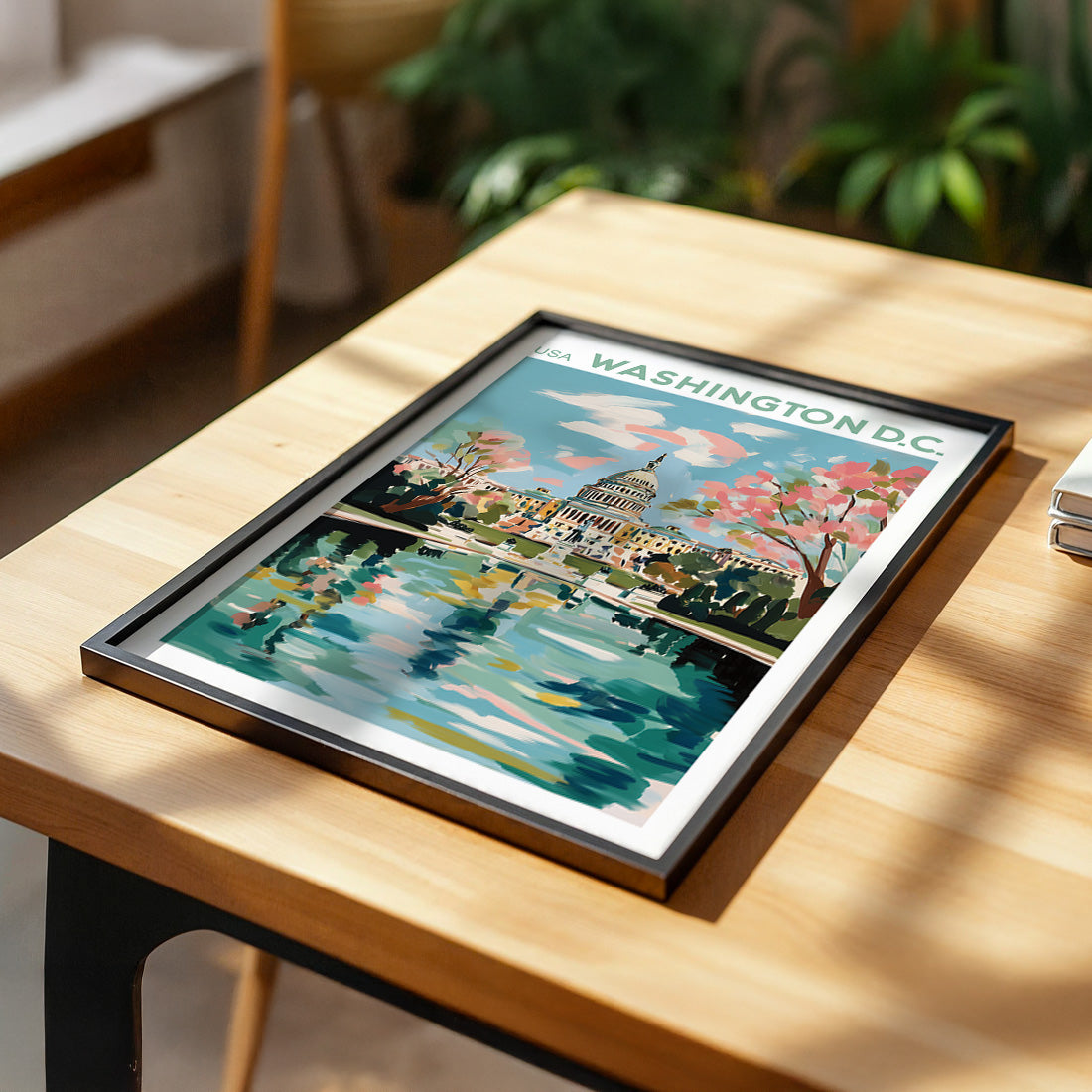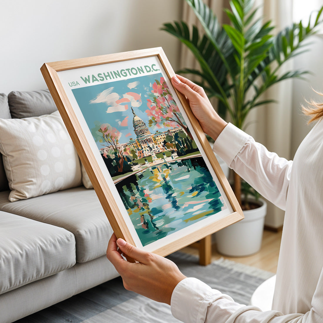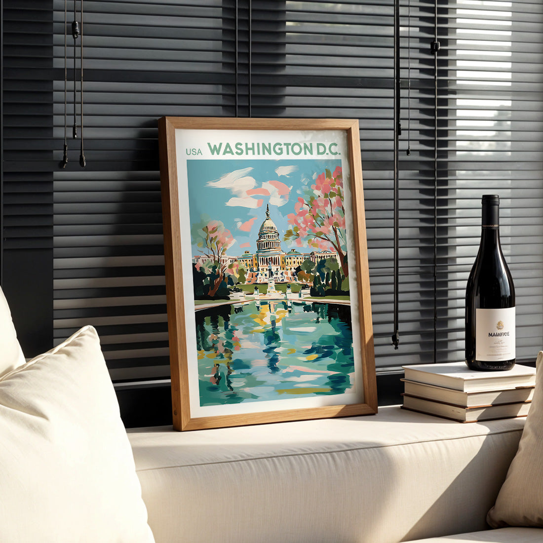 Whether displayed in your living room, office, or study, this Washington D.C. poster brings a touch of stateside charm to your décor.