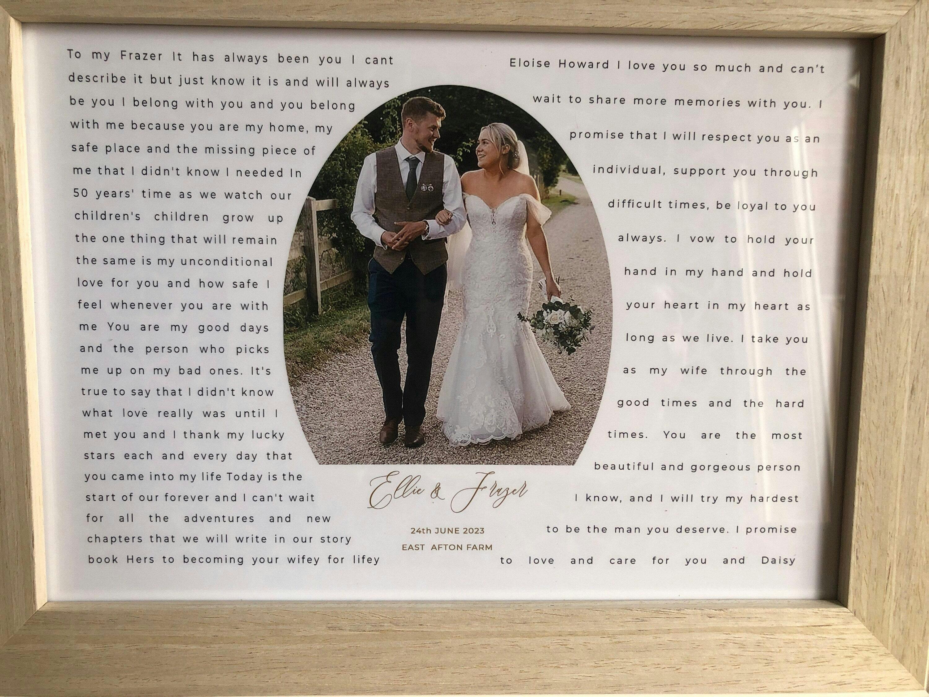 This romantic wedding vows photo print makes a great gift for Valentine's Day, anniversaries, or any other special occasion.