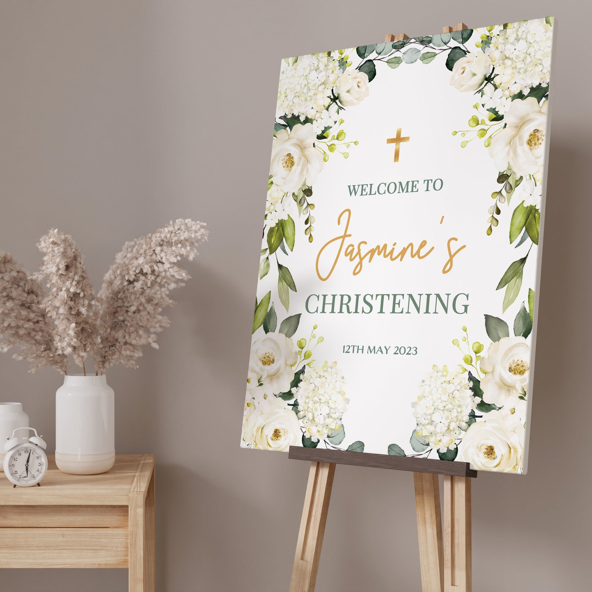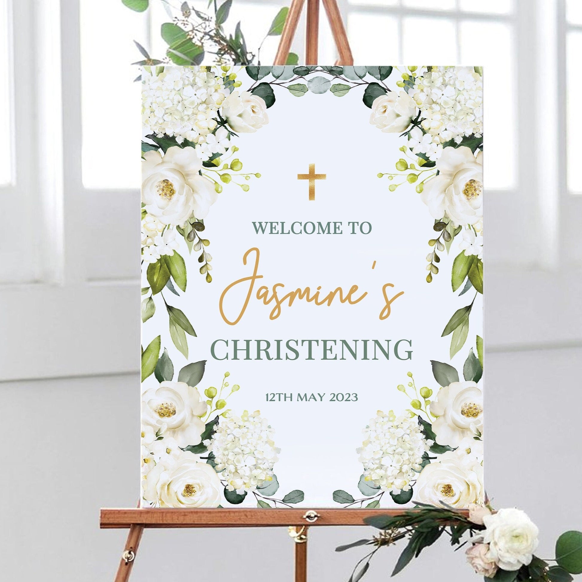 White Rose Christening Welcome Sign