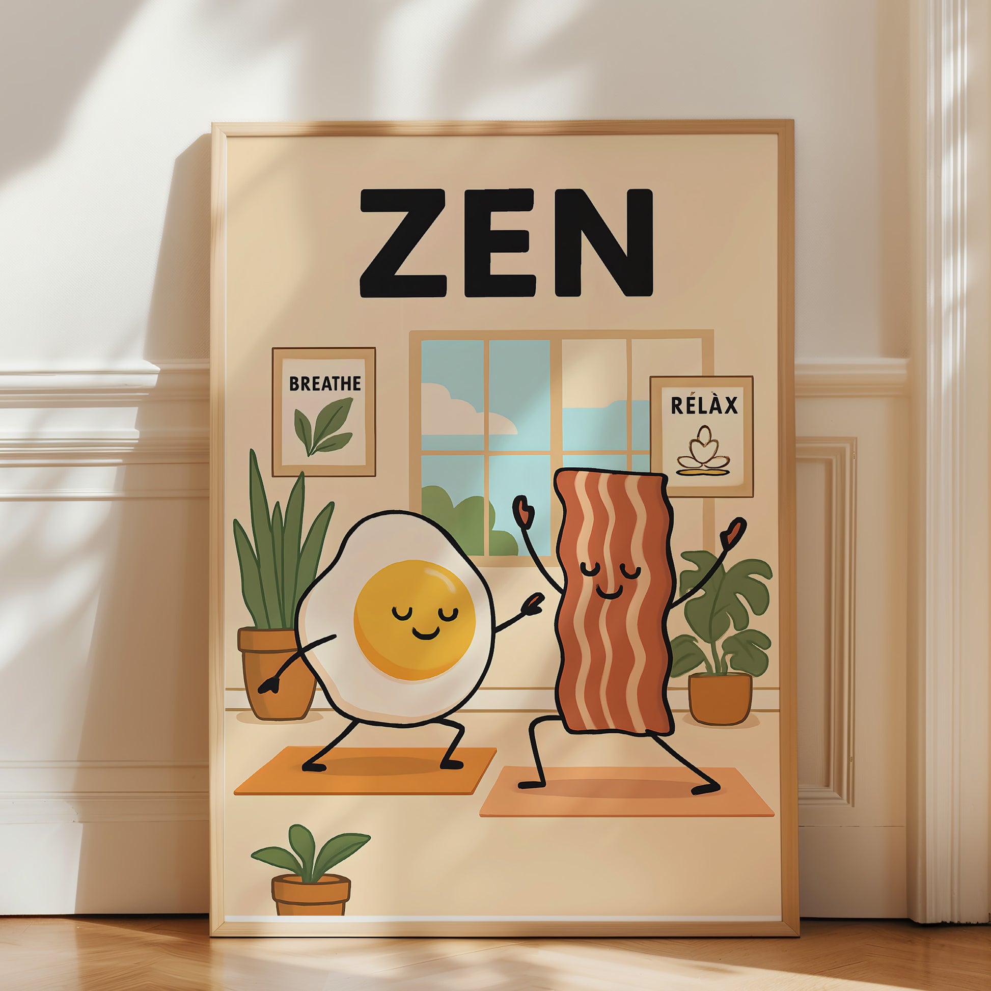 Find your inner peace (and your appetite) with this “Zen Breakfast” wall art featuring a happy bacon and egg duo striking yoga poses. It’s the perfect blend of humor and cozy charm — ideal for kitchens, dining areas, or anywhere that could use a little lighthearted energy.